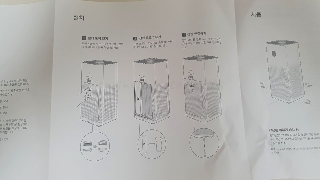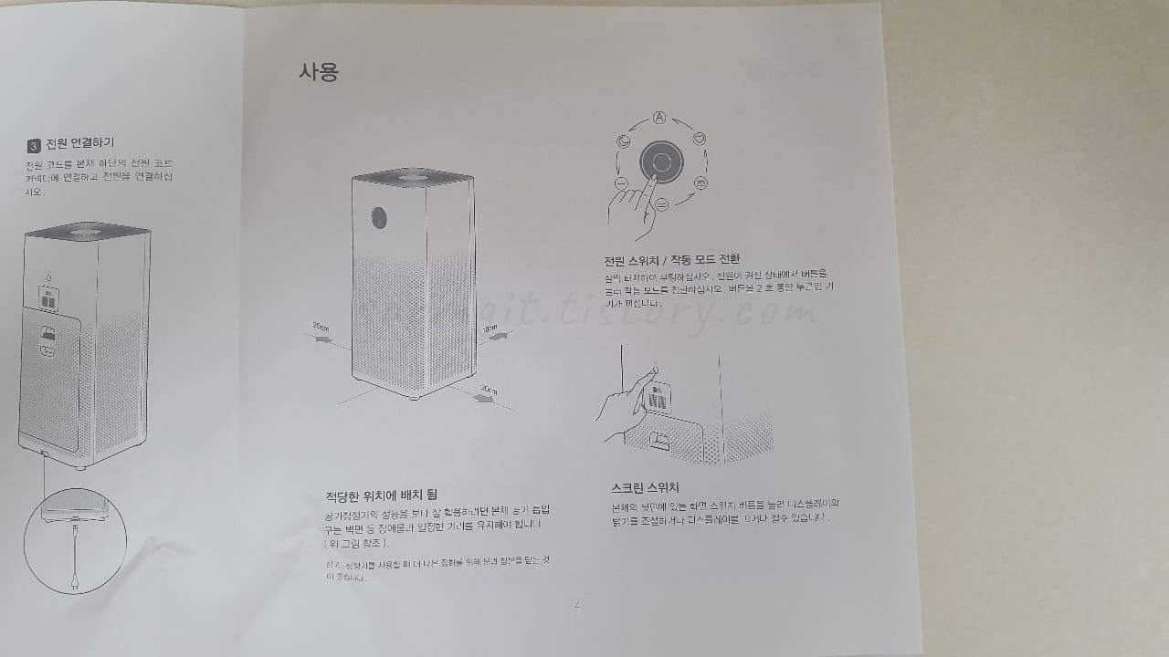 열자마자 MI 공기청정기 사용 설명서를 확인할 수 있었는데요. 주요내용은 이번 개봉기에서 글로 모두 설명드릴 것이기 때문에 별도로 사용설명서를 읽으실 필요는 없습니다. 하지만 궁금하신 분들을 위해서 모두 찍어서 개봉기 하단에서 소개드리겠습니다.