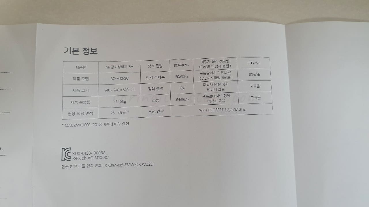 참고로 미에어 우측편에는 에너지소비효율등급 라벨이 있는데요. 샤오미 미에어 3H는 에너지소비효율등급이 3등급이고 1제곱미터당 소비전력은 0.81W라고 합니다. 미에어 3H의 경우 계산해보면 1년동안 풀가동을 했을 때 17,000원정도라고 하니 전기비가 정말 저렴한 편입니다. 즉 미에어 3H를 한달간 풀사용을 해도 전기세는 1416원 정도입니다.