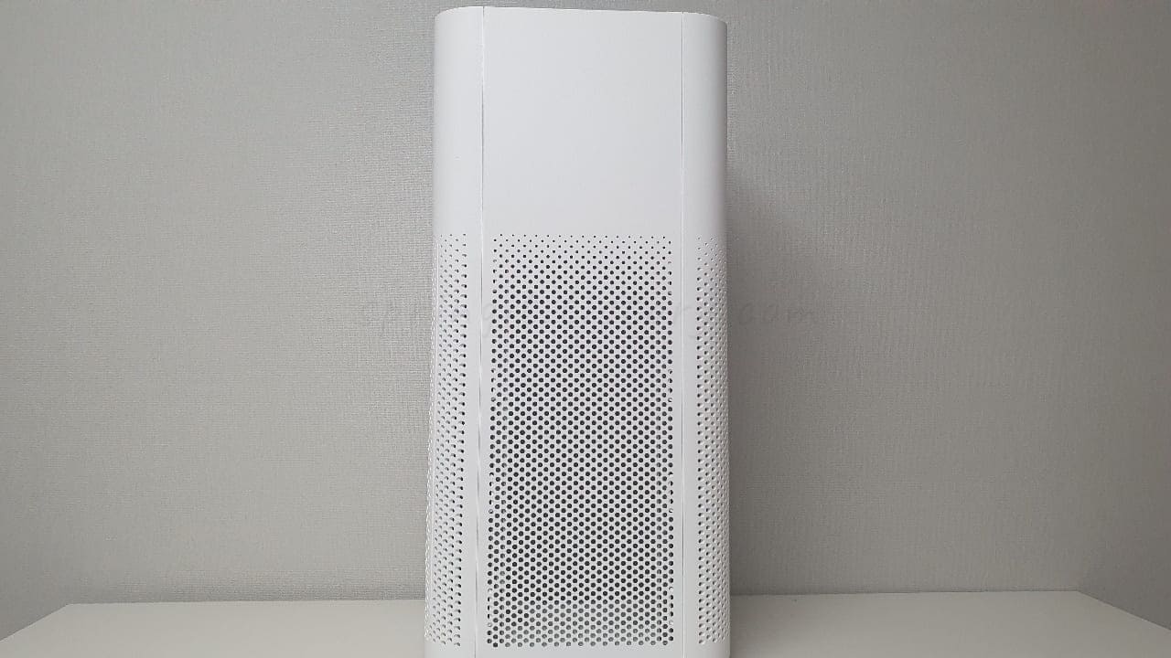 드디어 실체를 들어낸 샤오미 미에어 3H입니다. 전면부 상단에는 디스플레이 및 터치식버튼(전원모양)을 확인할 수 있었고 아래에는 그라데이션 효과가 들어간 공기청정을 위한 구멍들이 보여집니다. 디자인은 블랙&화이트 정말 깔끔하고 이쁜 것 같습니다.