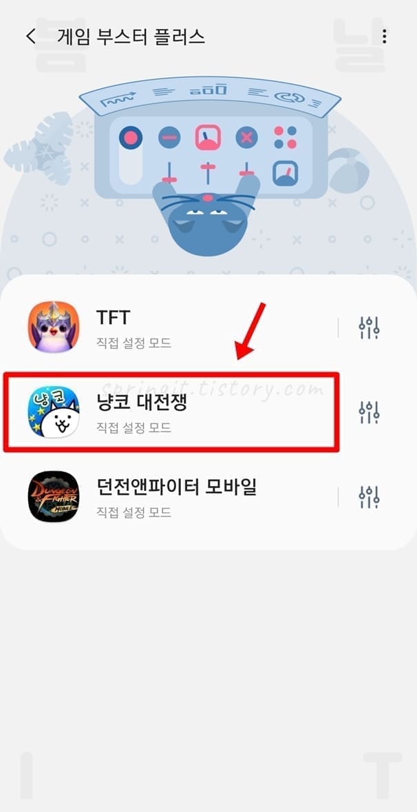 9. 성능을 조절하고 싶은 게임을 클릭합니다.