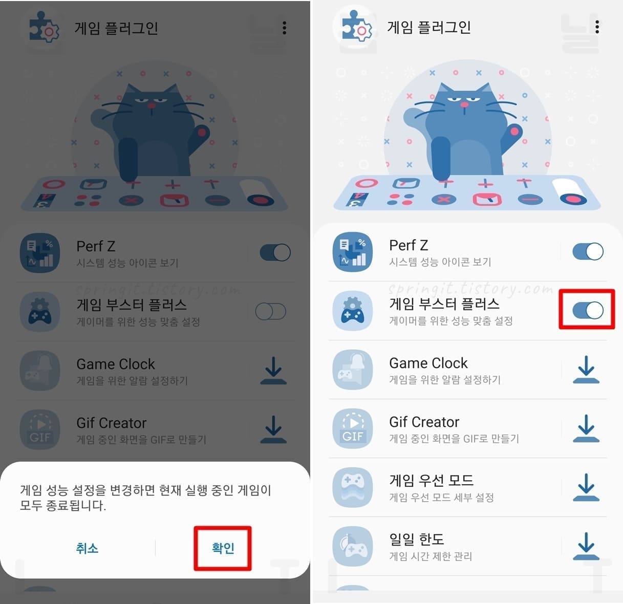 게임 성능 설정(게임 부스터 플러스)를 켜면 현재 실행중인 게임이 모두 종료됩니다. 그렇기에 사전에 게임을 저장(SAVE)하고 오시길 바랍니다.