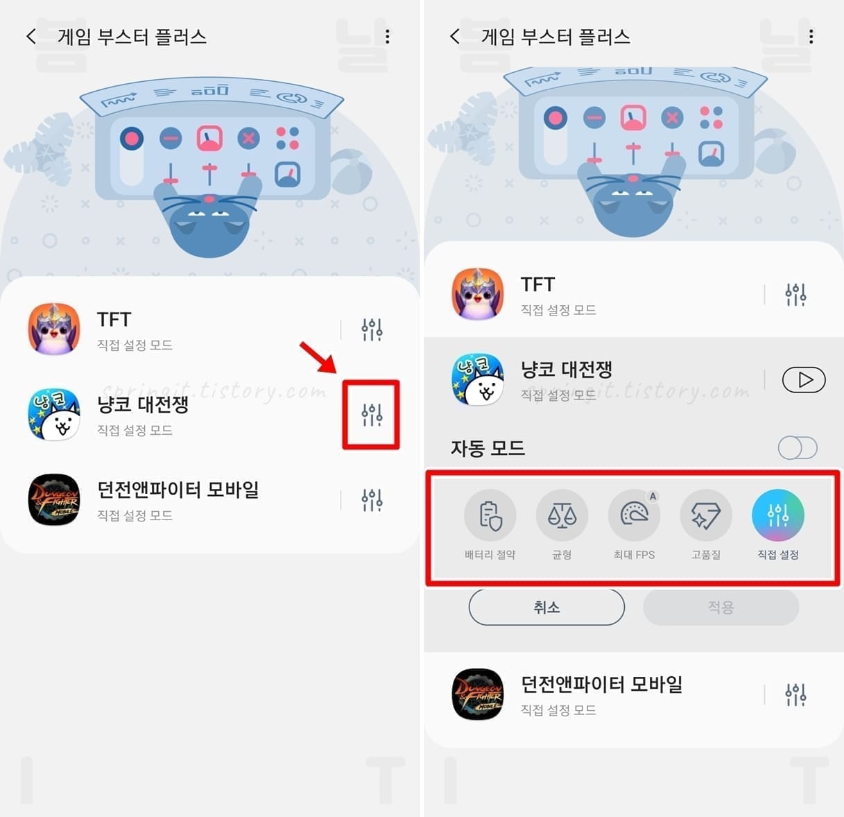 갤럭시 게임 부스터 플러스에서 자동 모드 사용하기