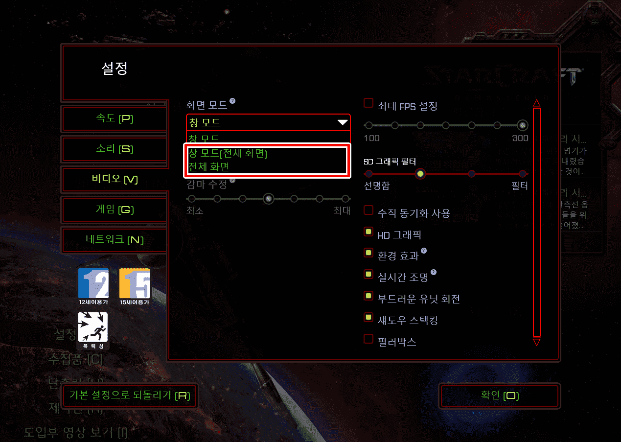 스타크래프트는 오래전 네모난 뚱뚱모니터에 맞춰서 개발된 앱이 였기 때문에 적정 사이즈가 4:3 정도입니다. 그런데 요새는 모니터 사이즈가 21:9와 같이 가로가 길죽하게 나오기 때문에 과거버전의 스타크래프트를 즐기기 적합하지 않았는데요. 그래서 창모드로 사용되거나 강제로 전체화면으로 늘려 약간의 그래픽이 깨짐을 감수하며 사용하였습니다.