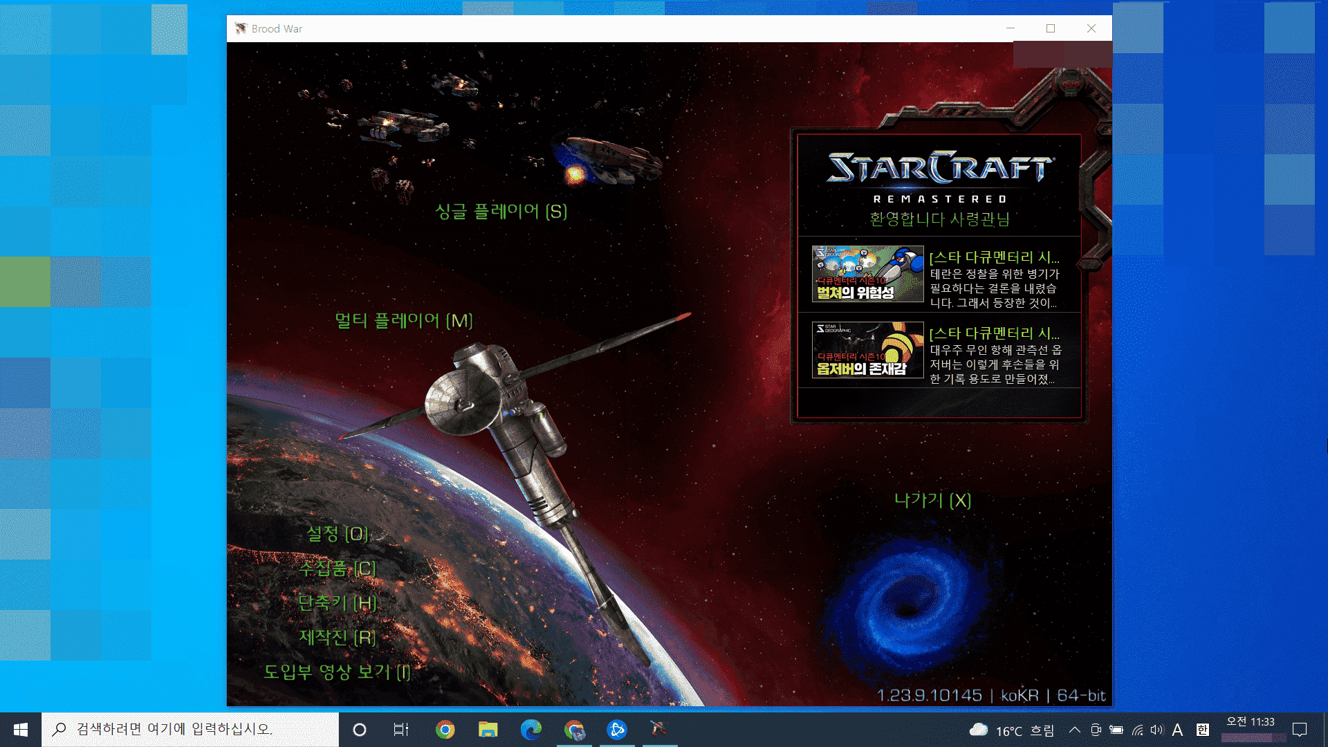 4. 스타크래프트가 전체화면으로 설정됩니다.