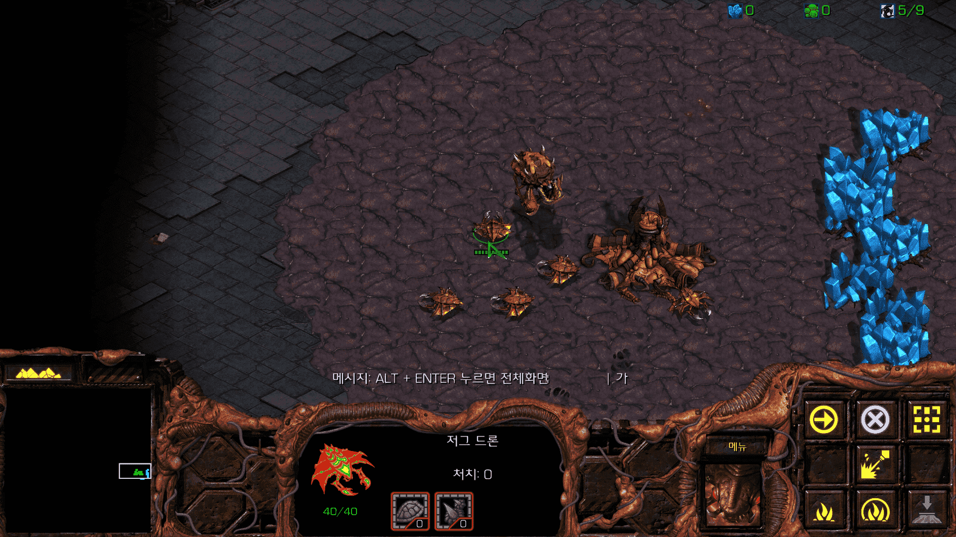 스타크래프트 전체화면 단축키는 [ALT + ENTER] 입니다.