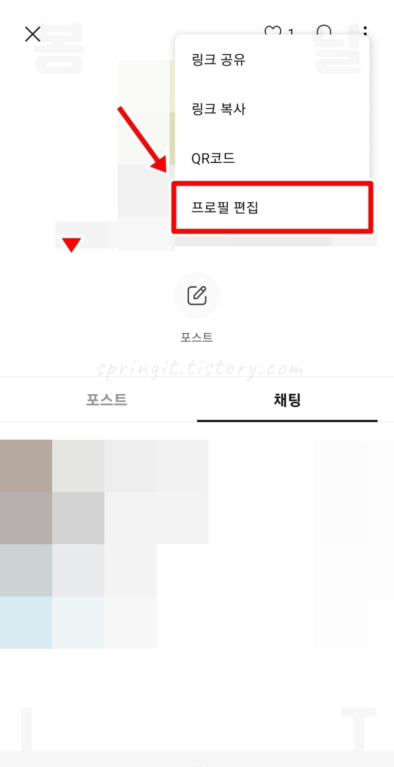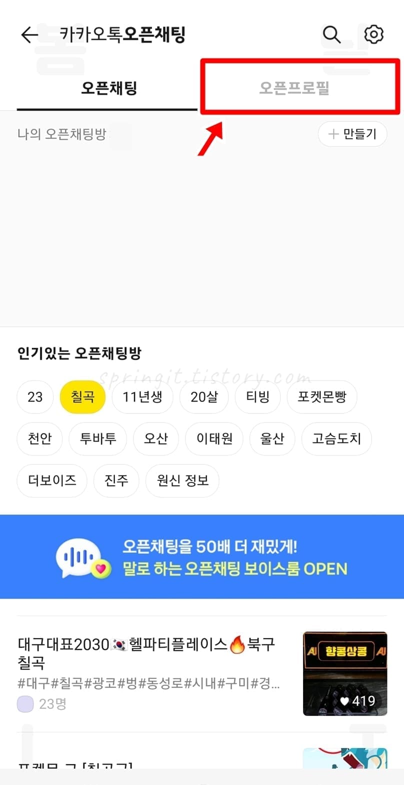 1. 나의 오픈채팅 프로필에서 채팅을 클릭합니다.