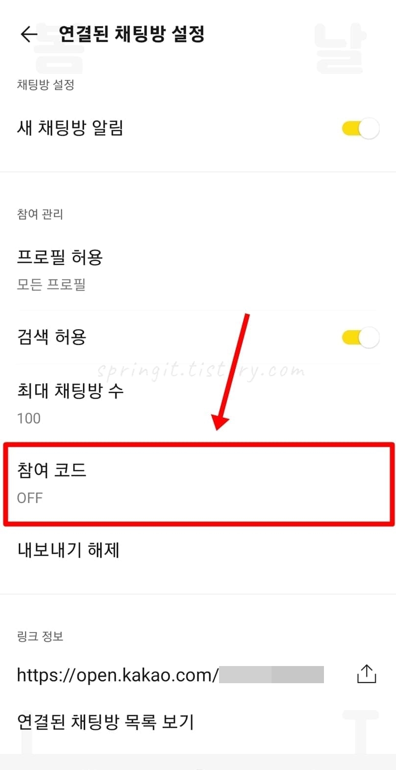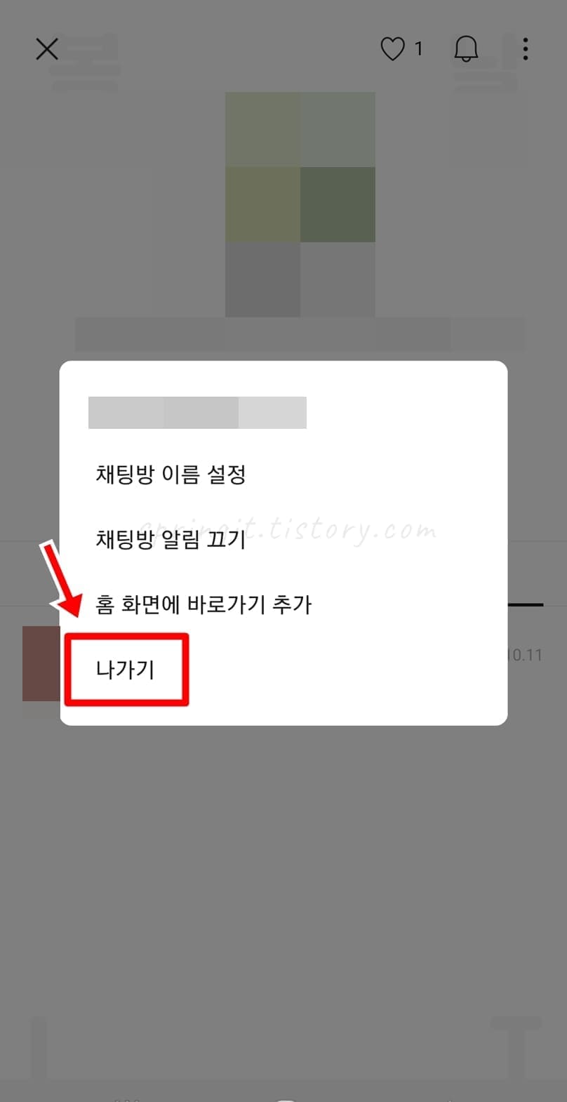 이미 내 오픈채팅 프로필에 대화를 걸어서 1:1 채팅방이 만들어진 상대방이 있다면 직접 채팅방을 나갈 수 있습니다. 대화를 걸어왔던 상대방이라도 방이 삭제되면 다시 나에게 대화를 걸 수 밖에 없고 이 때 참여코드가 설정되어 있기 때문에 자연히 대화가 차단되게 됩니다.
