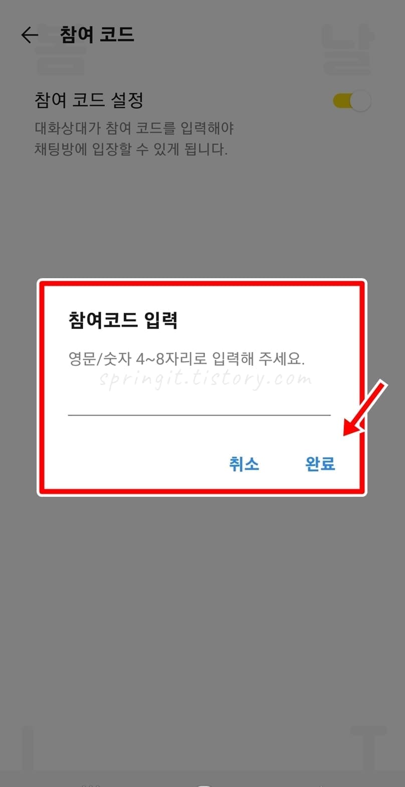 10. 영문/숫자 4~8자리로 참여코드를 입력합니다.