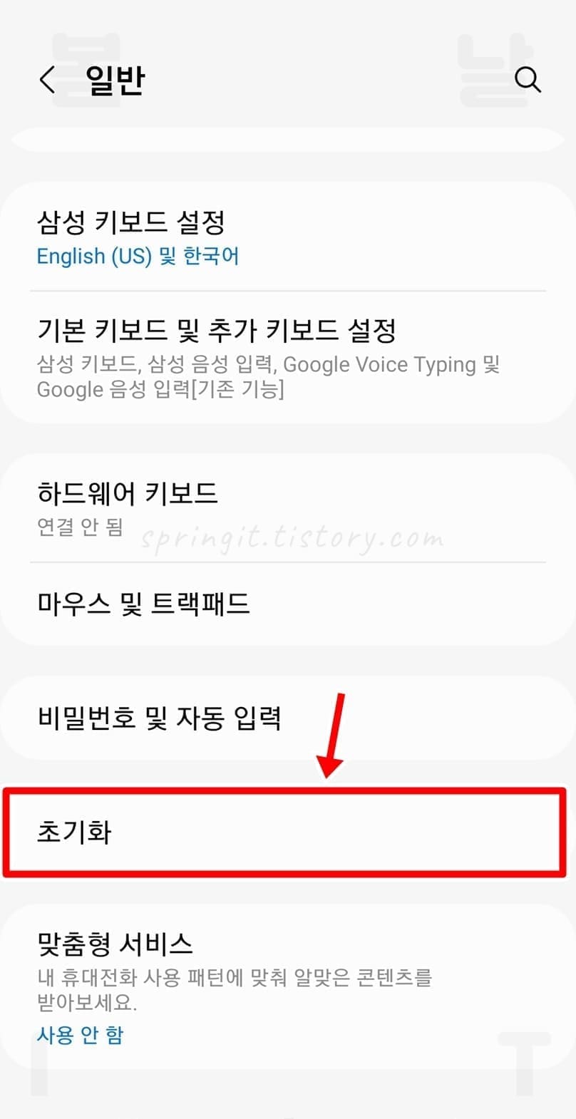 2. 초기화를 누릅니다.