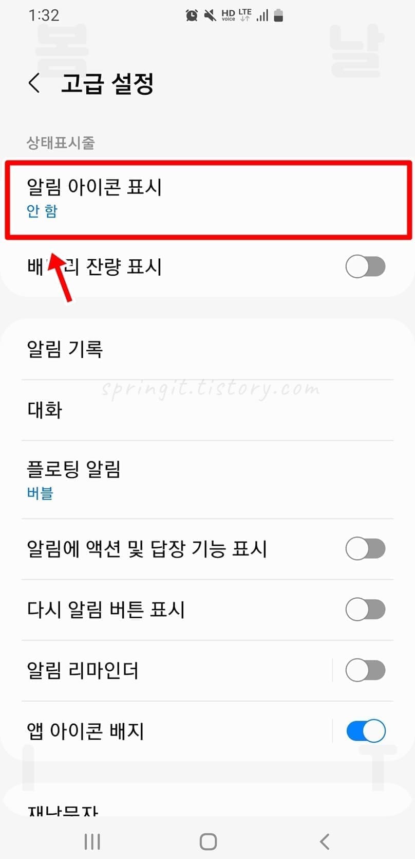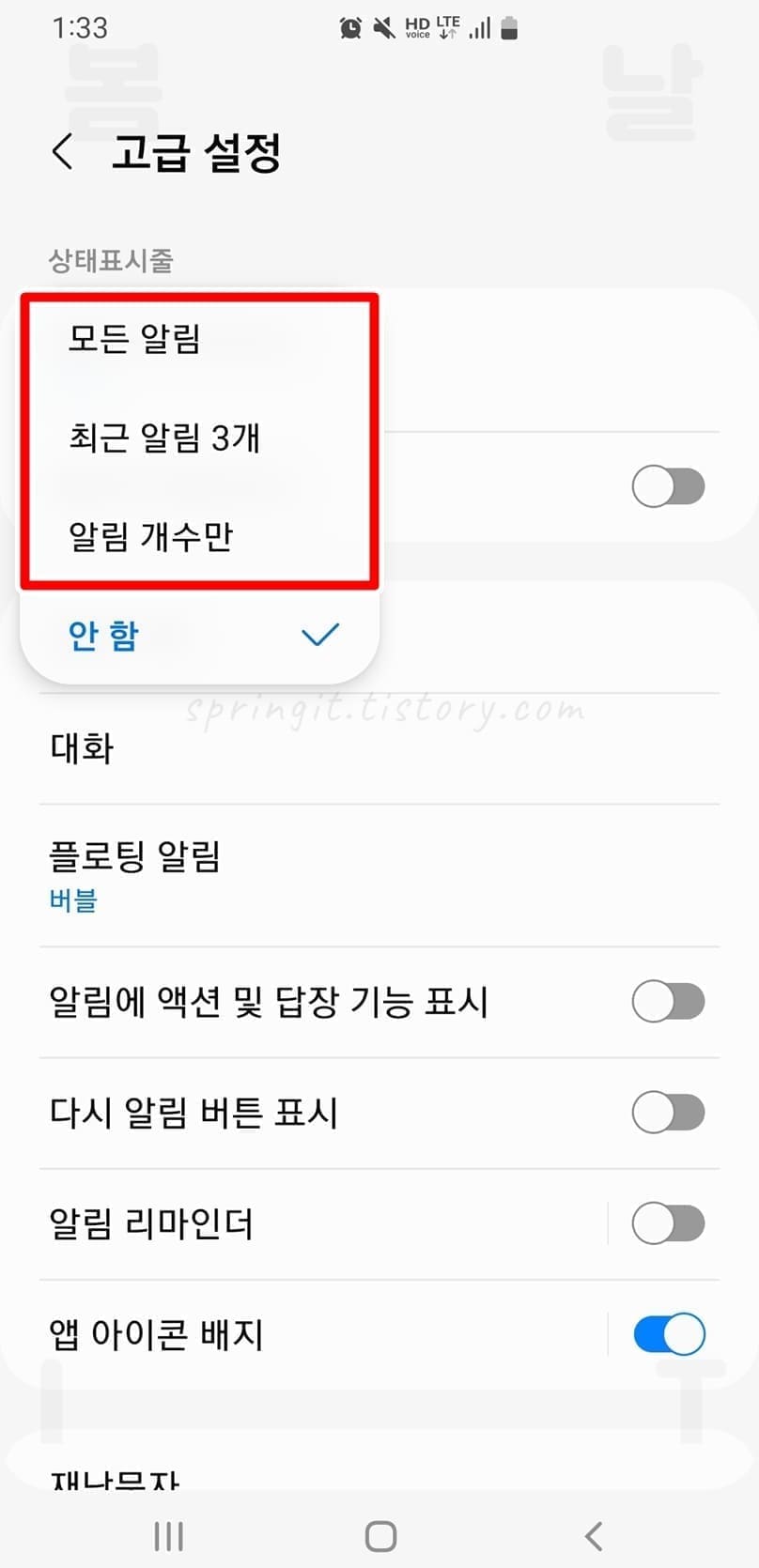 5. 알림 아이콘 표시하고 싶은 유형을 선택합니다.
