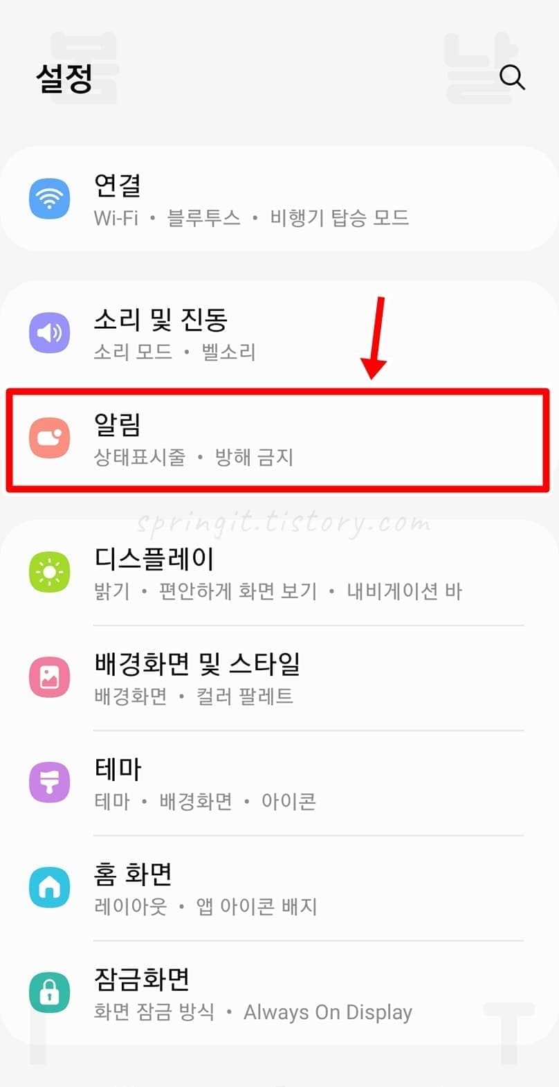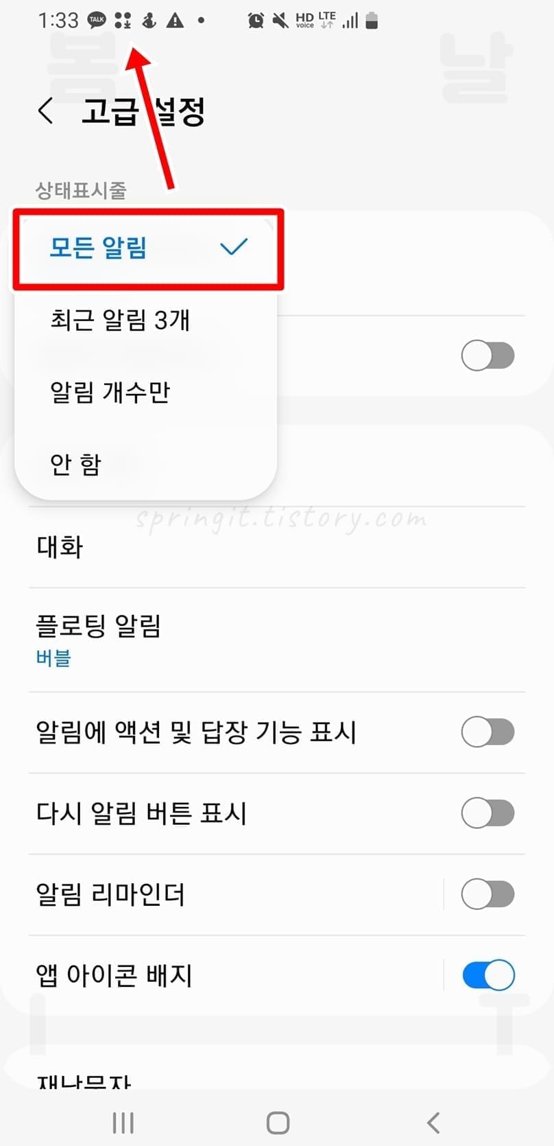 갤럭시 상태표시줄에 알림 아이콘 표시 설정하기