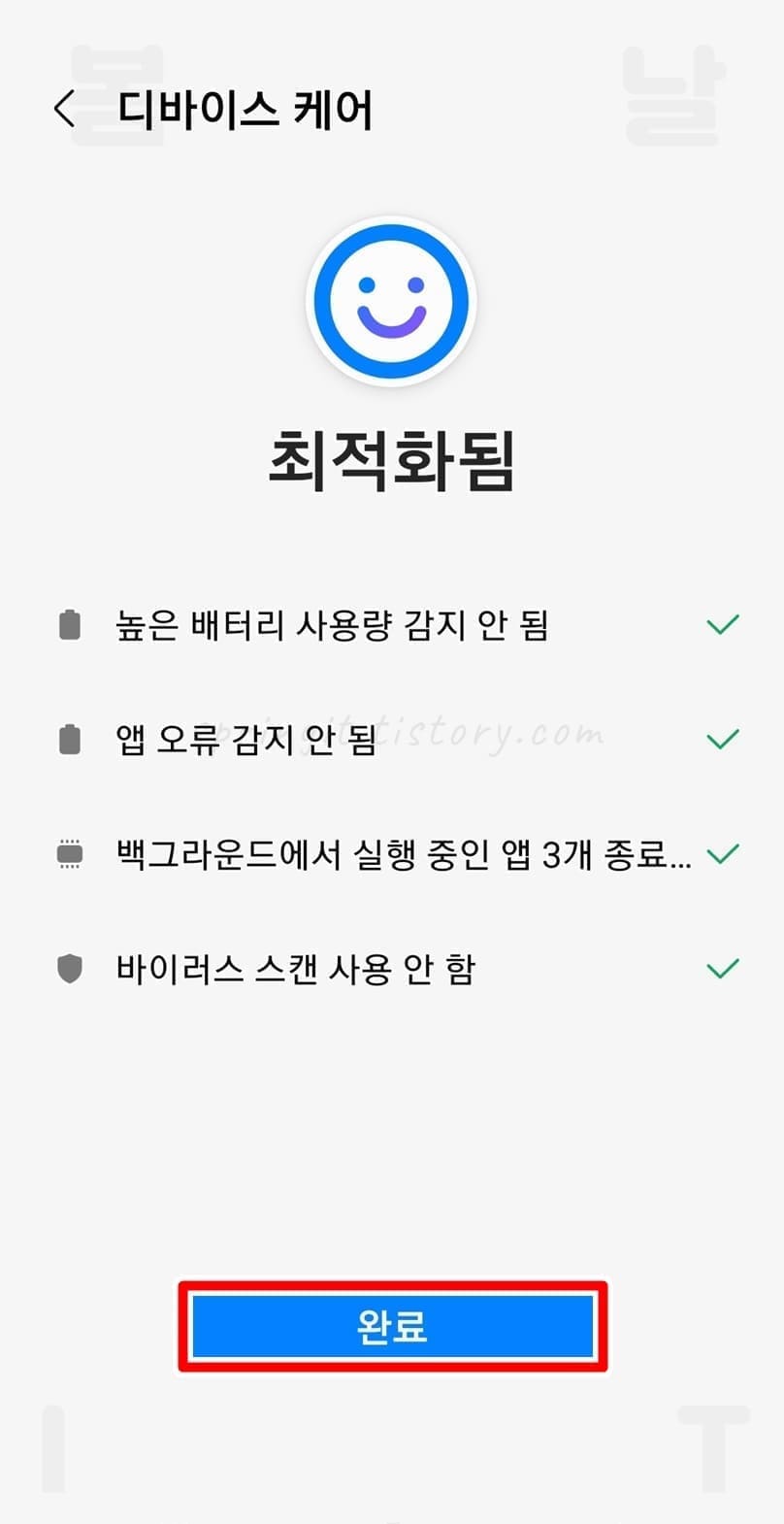 1. 설정 앱에서 배터리 및 디바이스 케어를 클릭합니다.