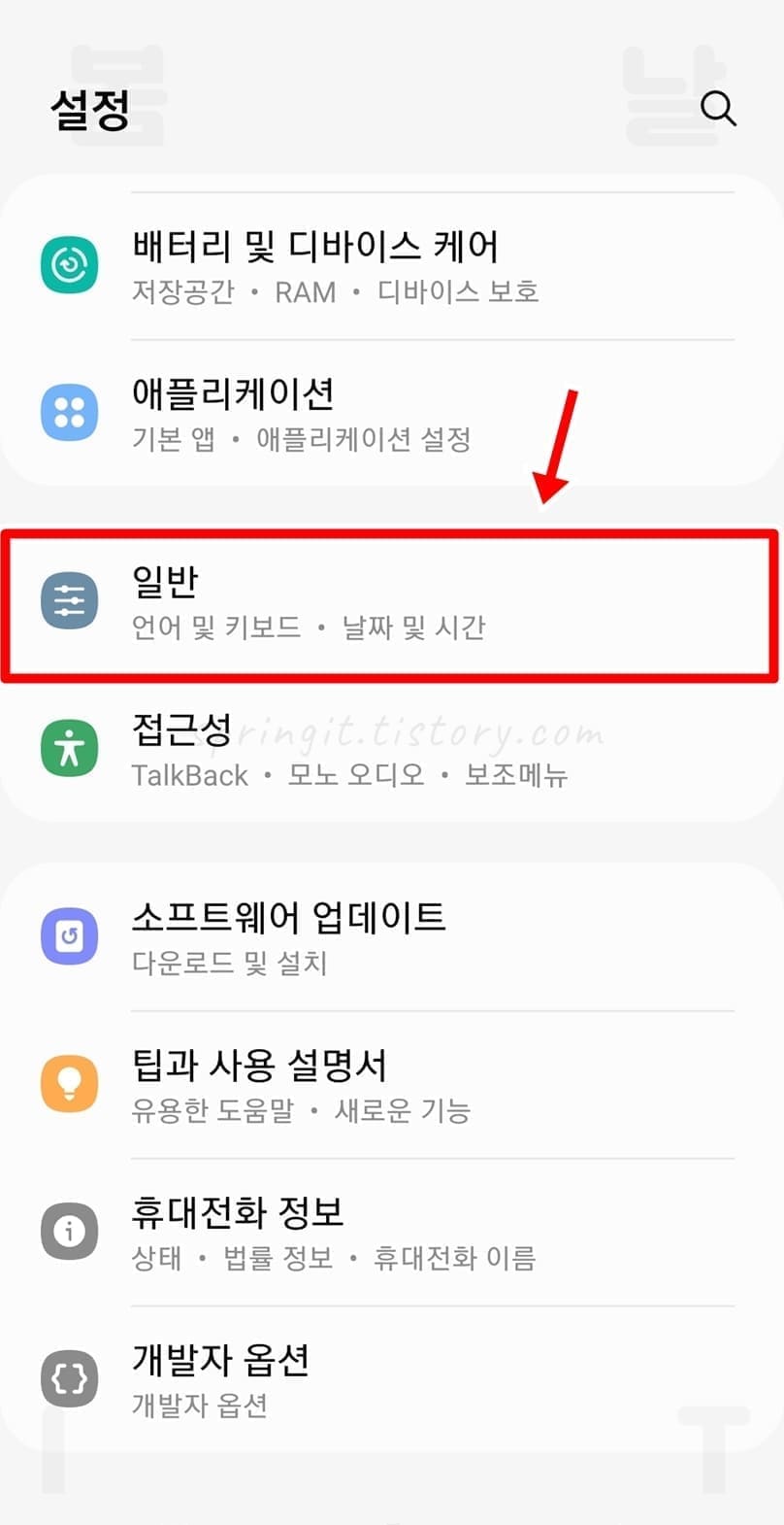1. 설정 앱에서 일반을 클릭합니다.