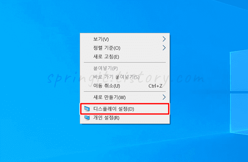 1. 컴퓨터 바탕화면의 빈공간에 마우스를 우클릭합니다.