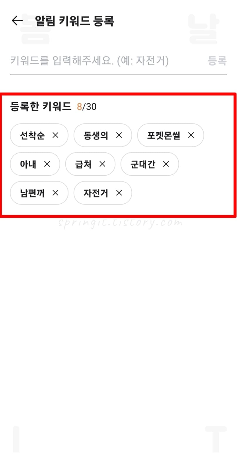 5. 알림받고 싶은 키워드를 입력합니다.