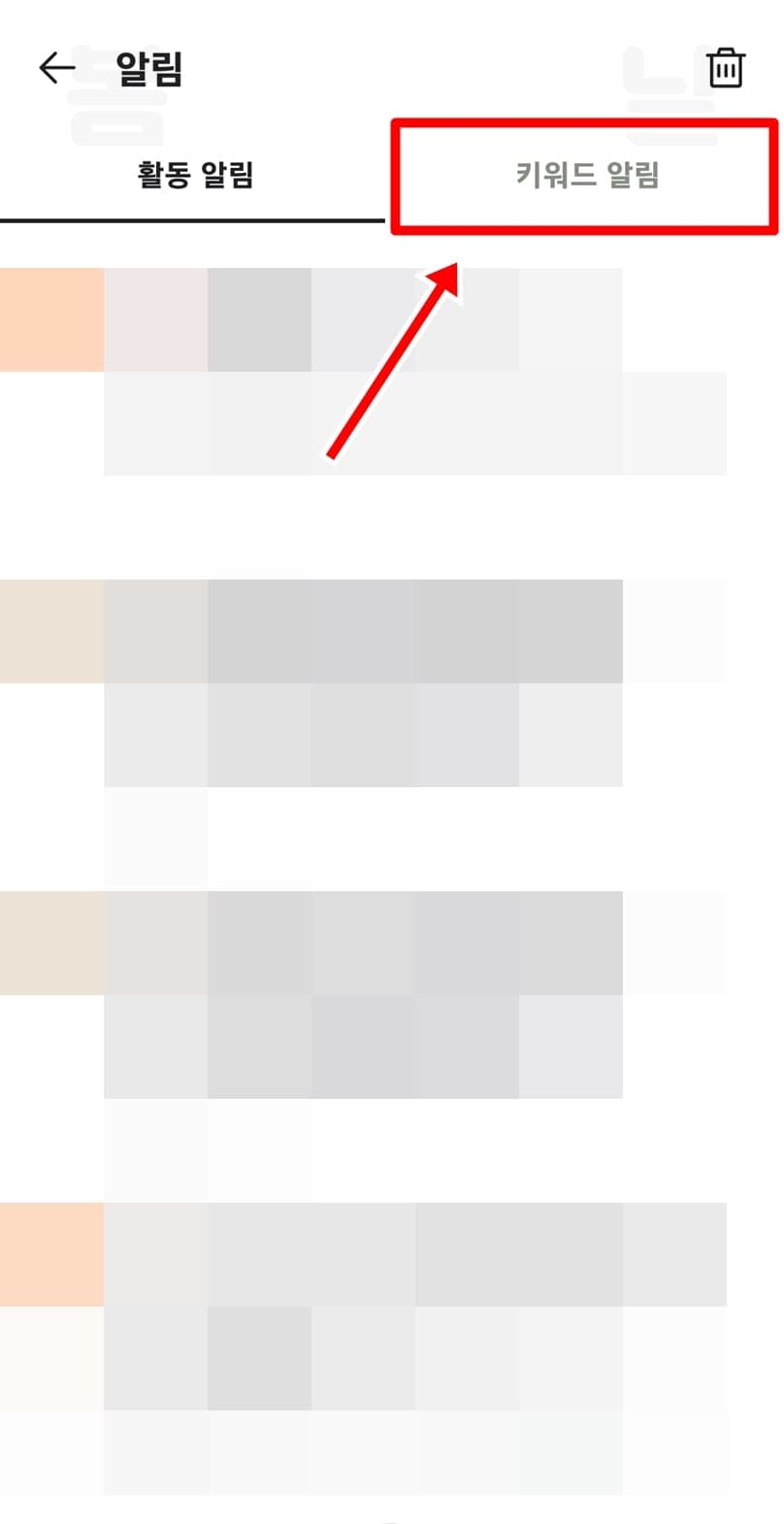 3. 키워드 알림을 누릅니다.