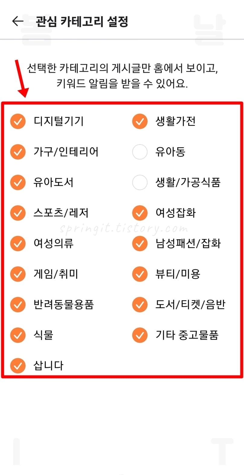 3. 키워드 알림을 받고 싶은 카테고리만 체크합니다.