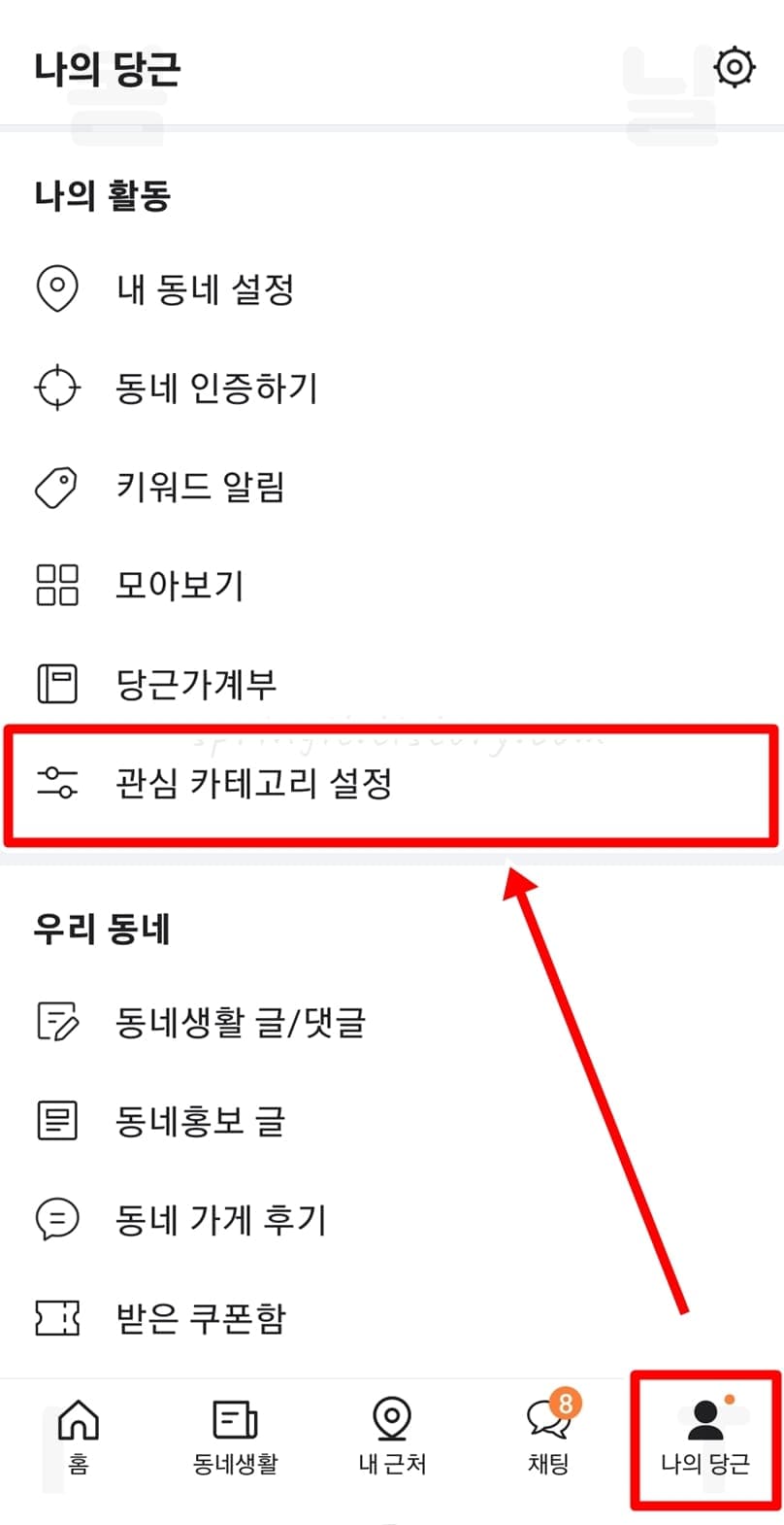 2. 관심 카테고리 설정을 누릅니다.