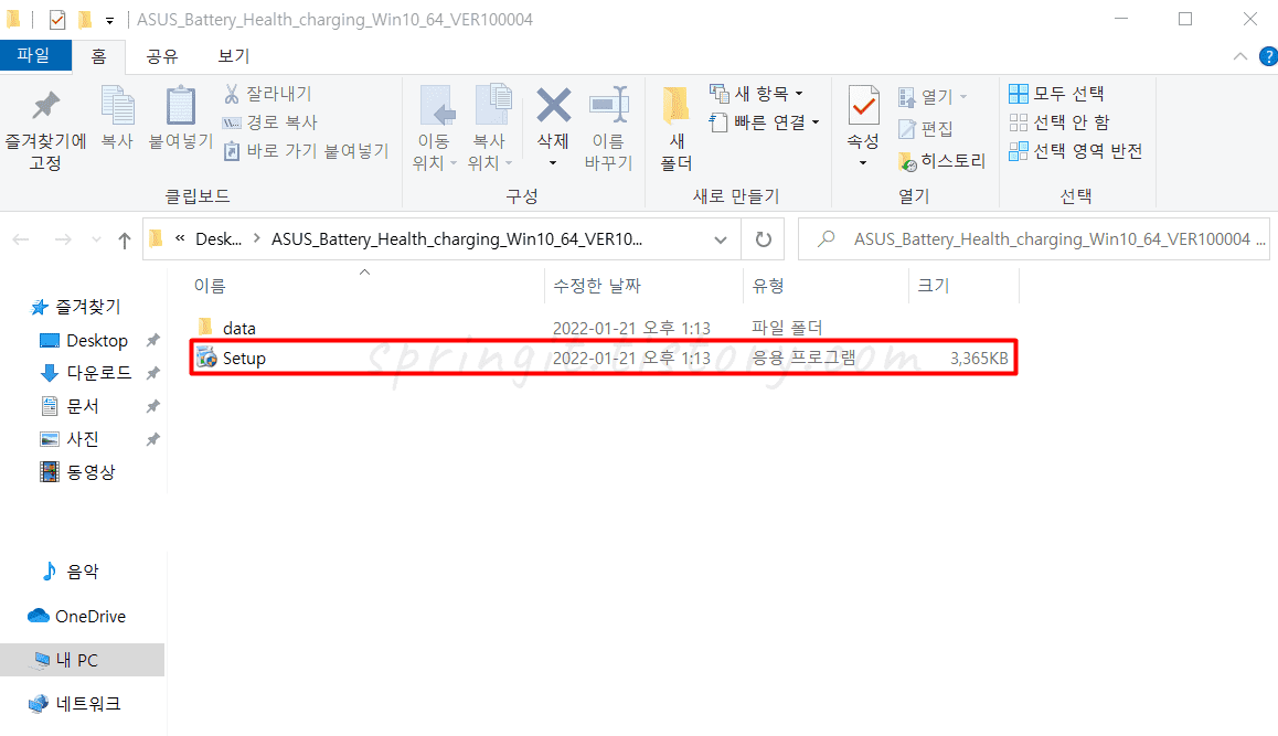 2. 압축을 풀고 폴더 안에서 Setup을 누릅니다.