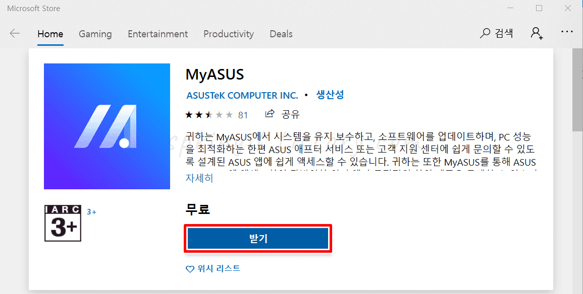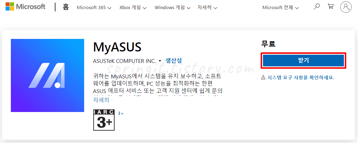 1. 마이크로스프트 MYASUS 다운 페이지로 들어가주세요.