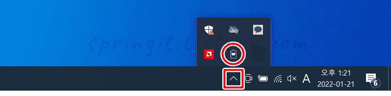6. 작업표시줄 우측 하단에서 ^ 버튼을 누릅니다.