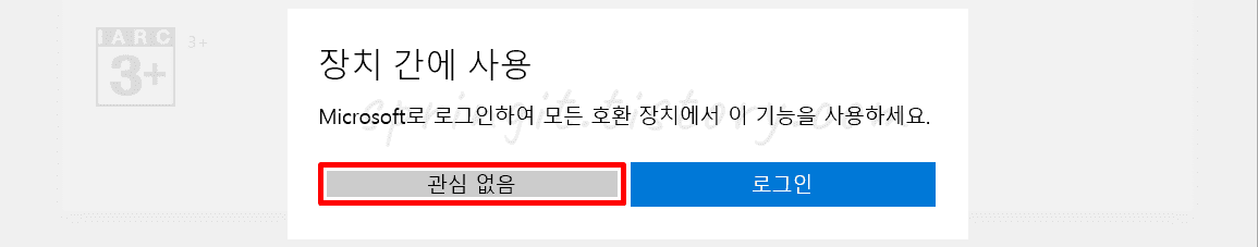 5. 장치 간에 사용 창에서 관심 없음을 누르세요.