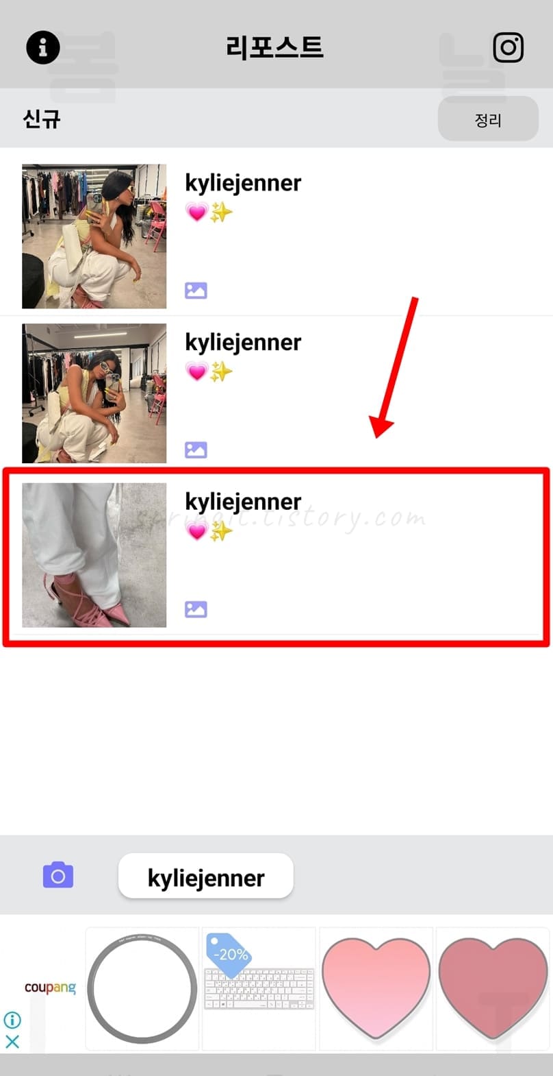 14. 리그램 사진이 갤러리에 저장되었습니다.