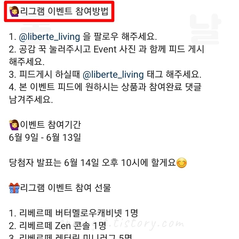 인스타그램 리그램 이벤트 주의사항- 리그램 이벤트를 주최하는 계정에서 참여방법을 잘 읽어보셔야 합니다. 리그램시 사진만 공유하는 것만 가능할수도 있고 @태그를 하거나 게시물의 글을 똑같이 복사해서 올려야 할 수 있기 때문입니다. 그렇기에 꼭! 참여할 이벤트를 상세히 읽어보시길 바랍니다.