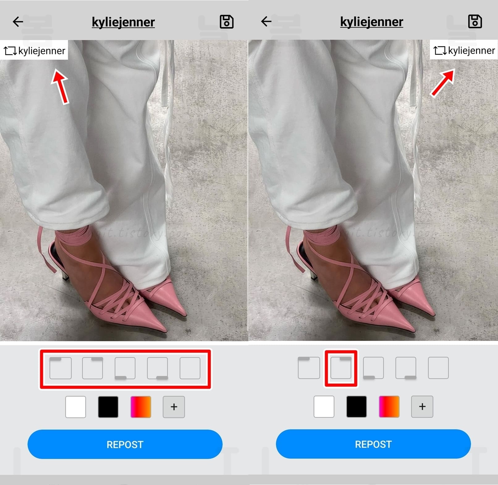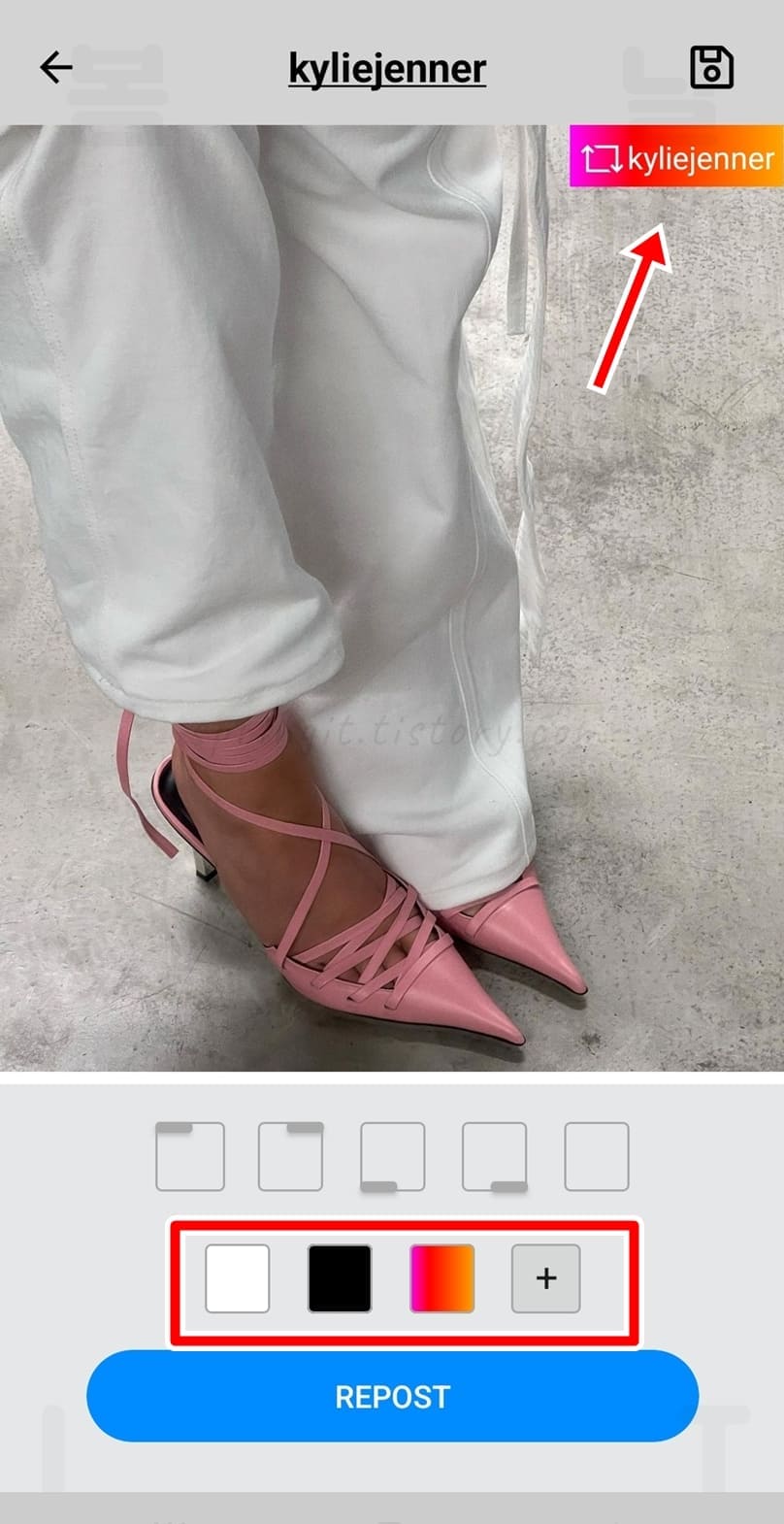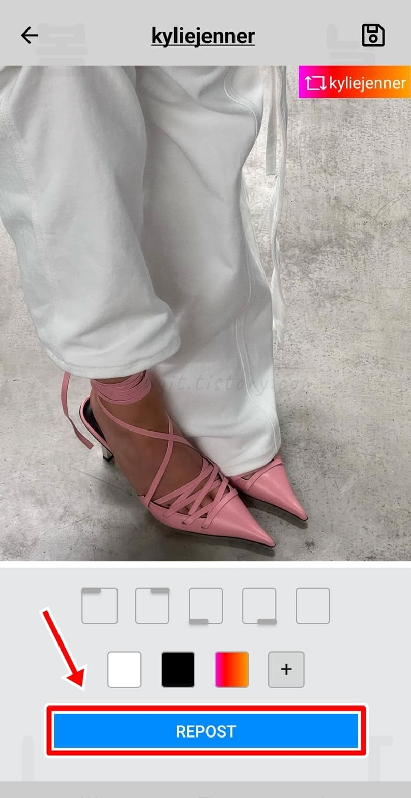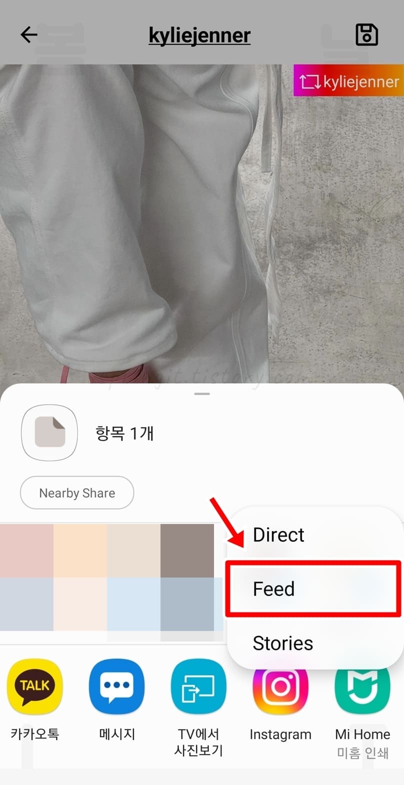 18. 리그램한 사진 게시물이 자동으로 첨부됩니다.