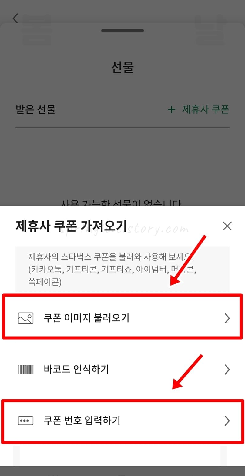 3. 쿠폰 이미지 불러오기 또는 쿠폰 번호 입력하기를 선택합니다.