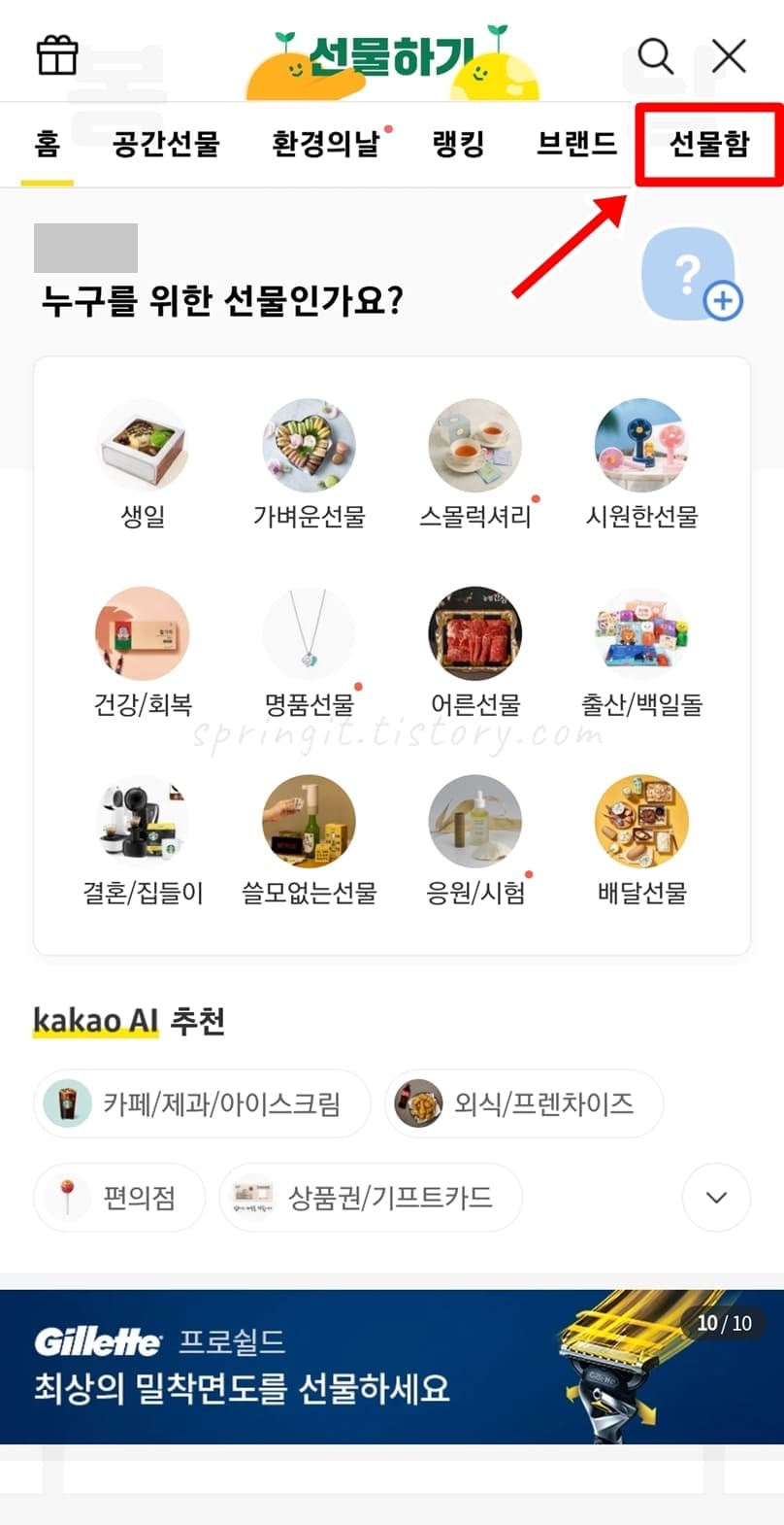 4. 선물함을 클릭합니다.