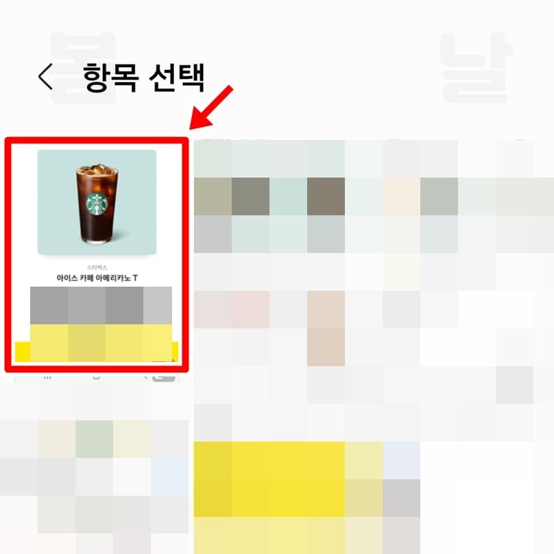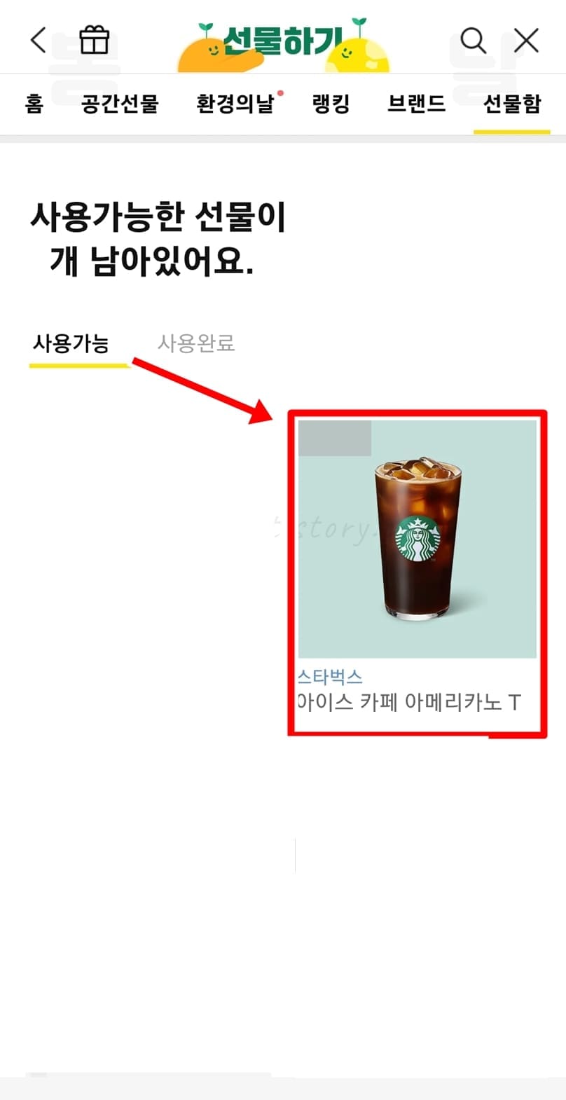 6. 사용가능 선물에서 스타벅스 기프티콘 교환권을 클릭합니다.