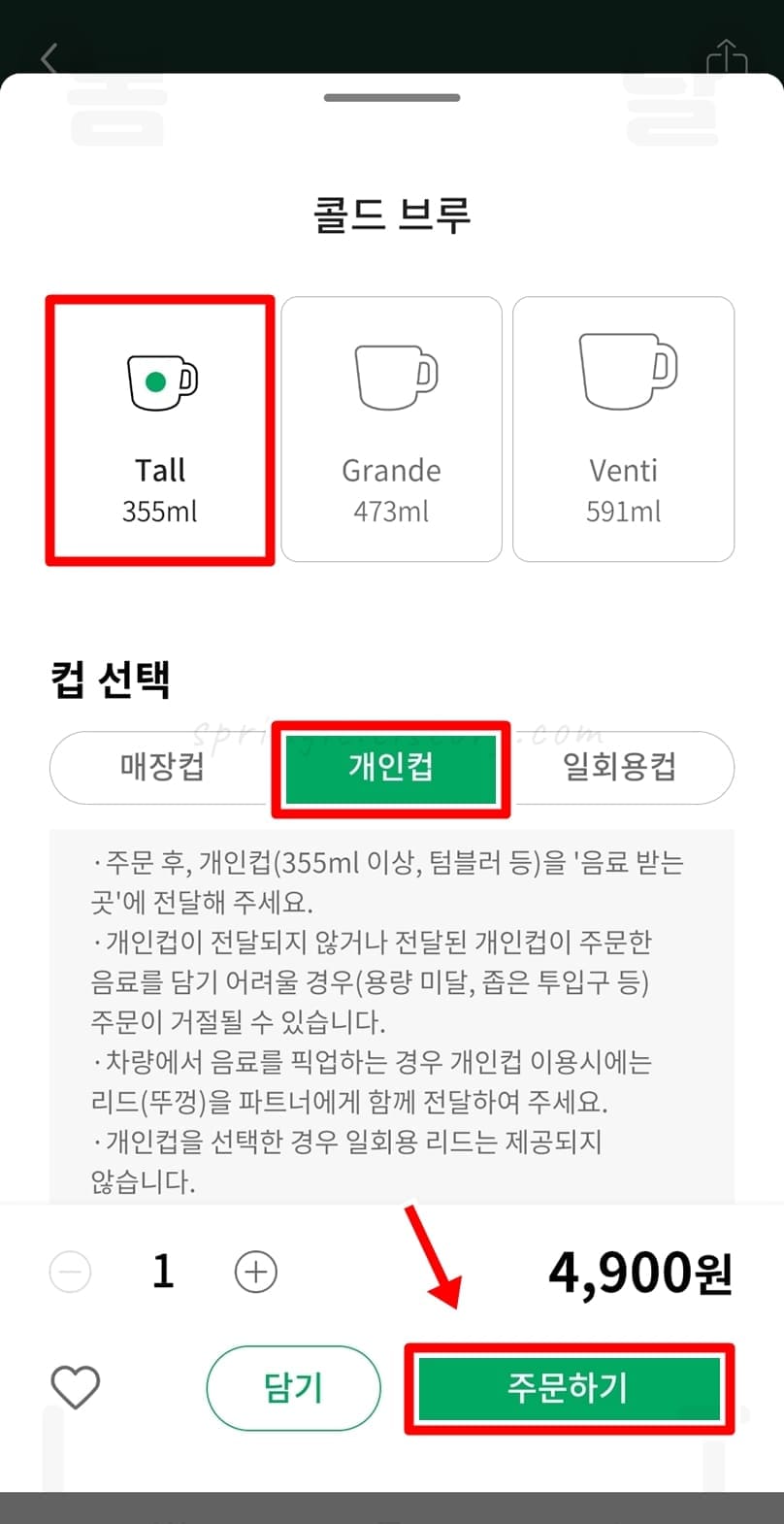9. 주문하기를 누릅니다.