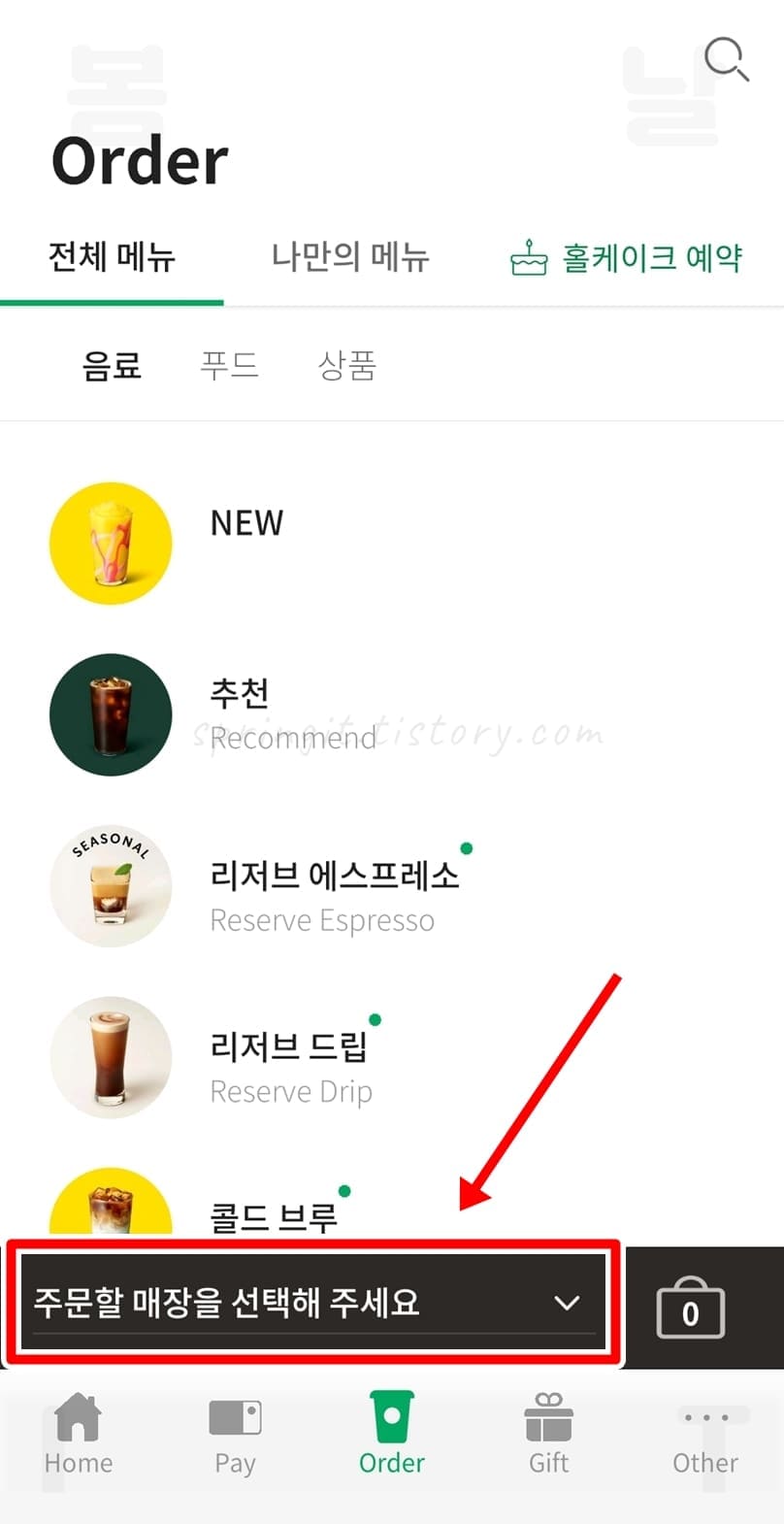 스타벅스 어플에서 사이렌 오더 주문하기