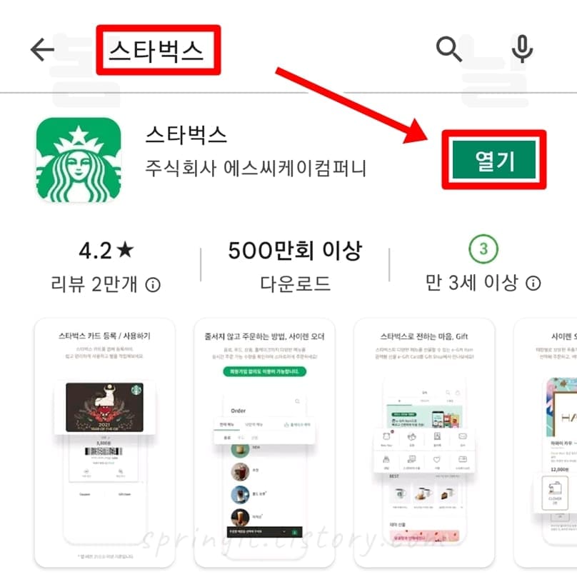 1. 스마트폰에서 스타벅스 어플을 다운로드 받습니다.