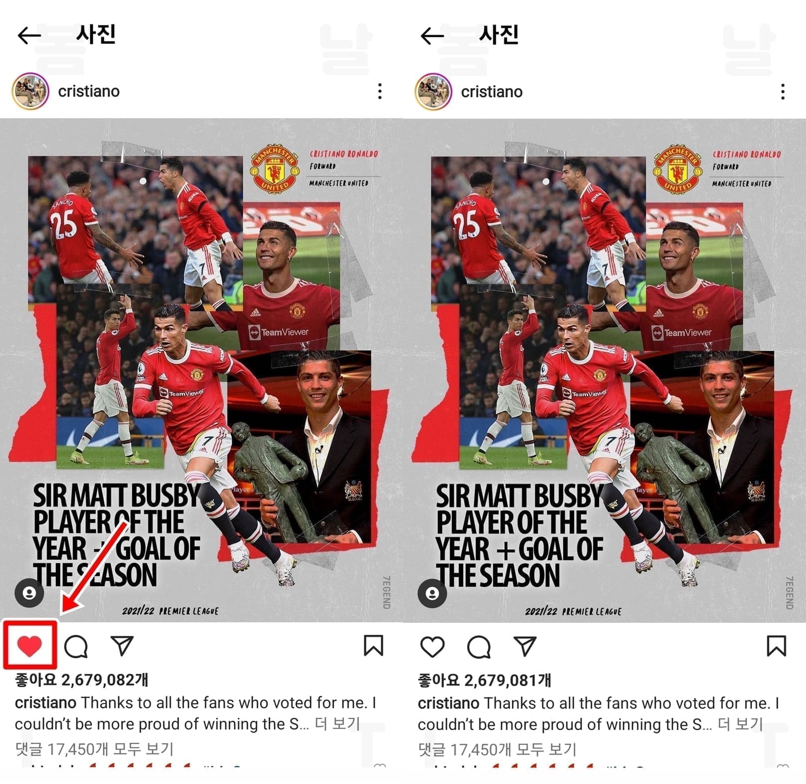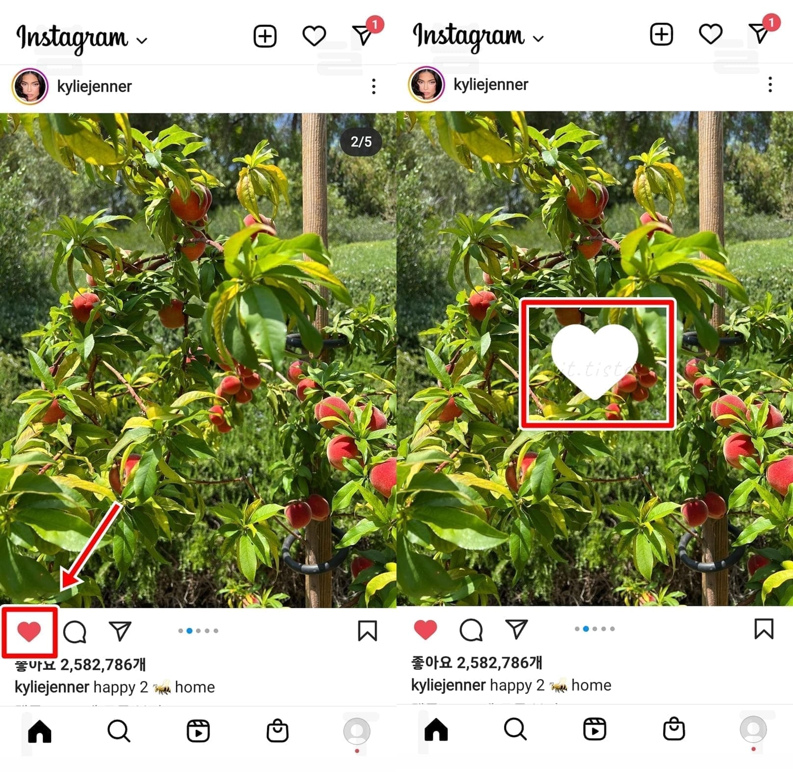 9. 좋아요 게시물을 확인하고 하트버튼을 눌러 좋아요를 취소할 수 있습니다.