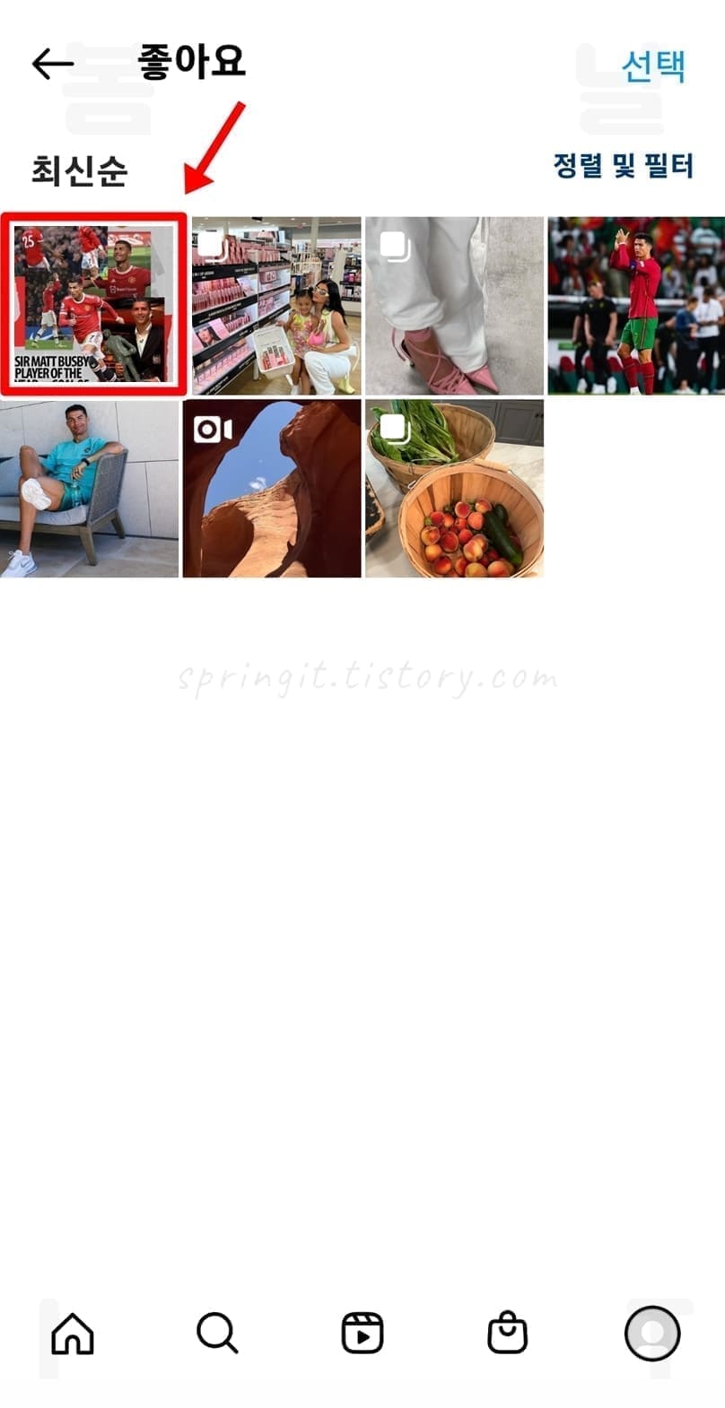 8. 보고 싶거나 좋아요 취소하고 싶은 게시물을 클릭합니다.