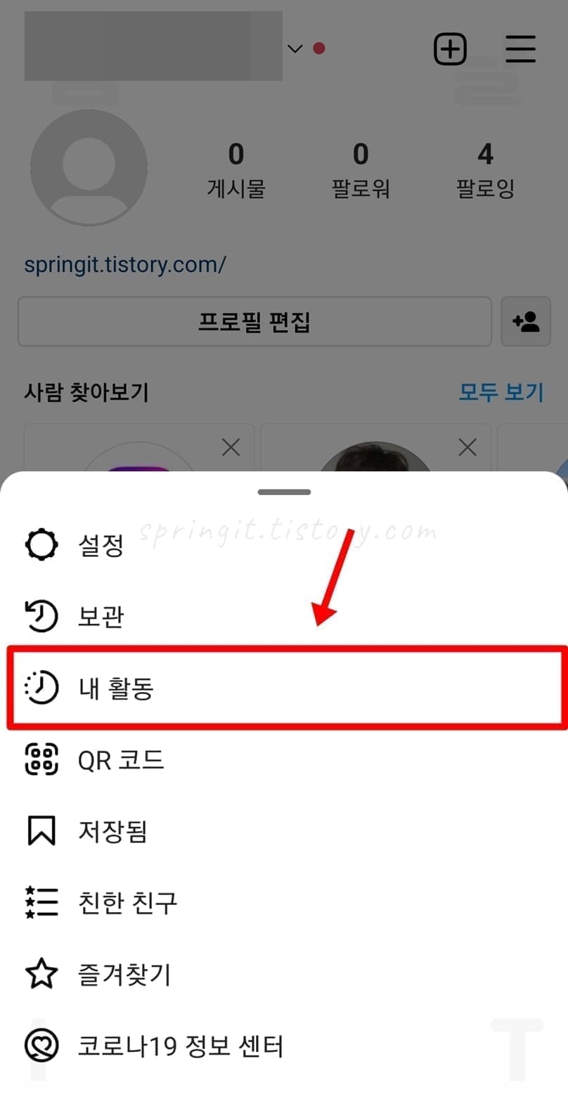 4. 내 활동을 클릭합니다.