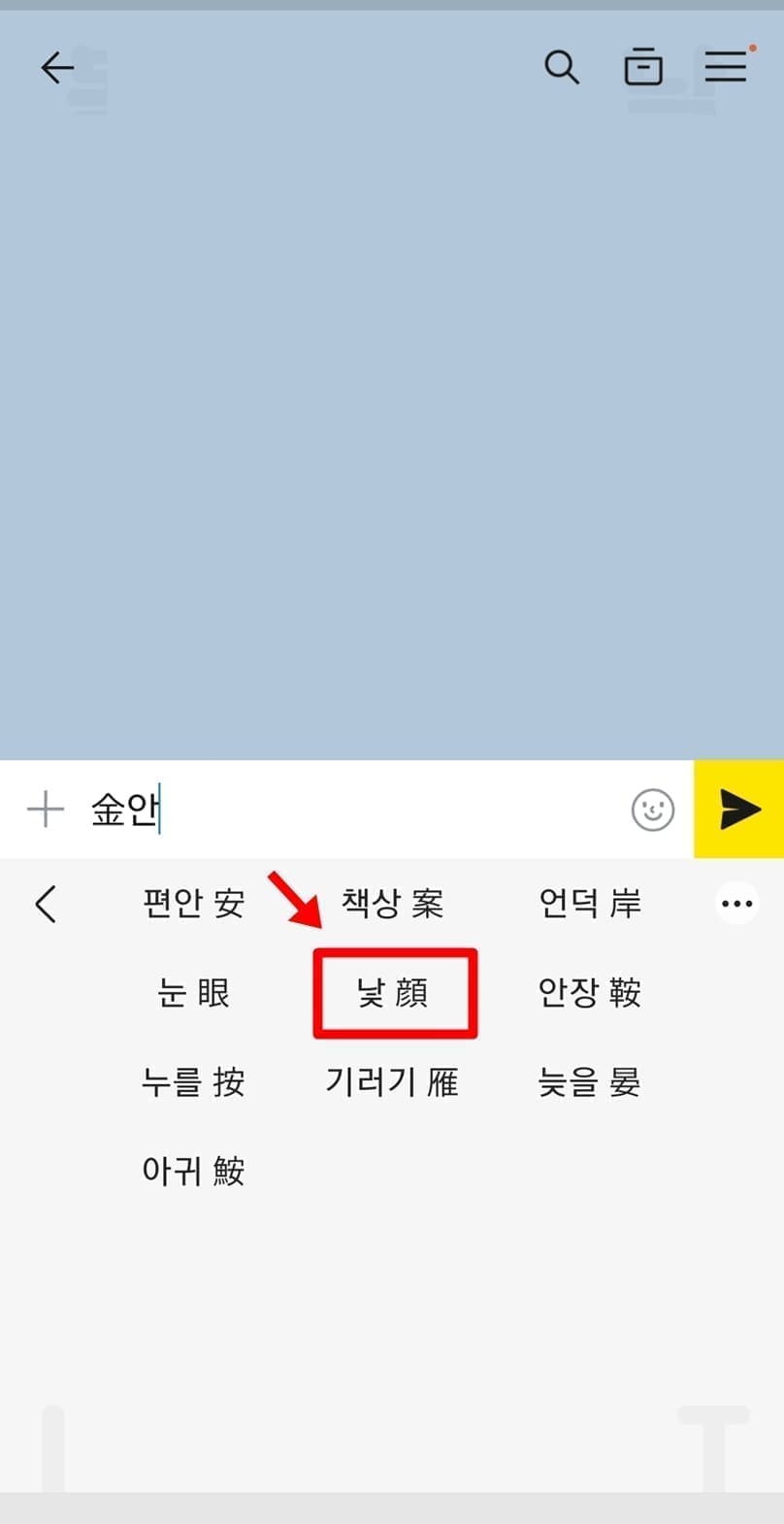 5. 채팅입력창에 한자로 쓰고 싶은 한글을 입력합니다.