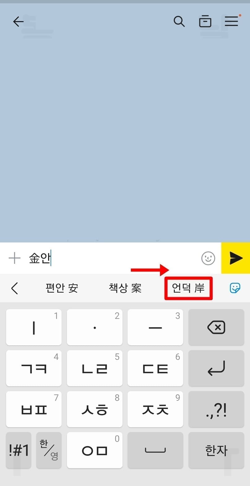 7. 삼성 키보드 상단에 보여지는 한자를 선택합니다.