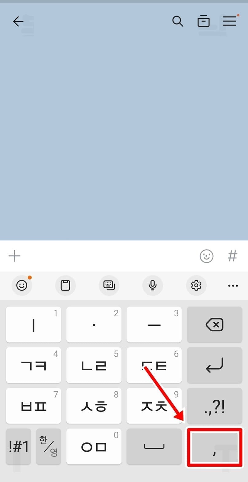 2. 쉼표(,) 버튼을 길게 누릅니다.