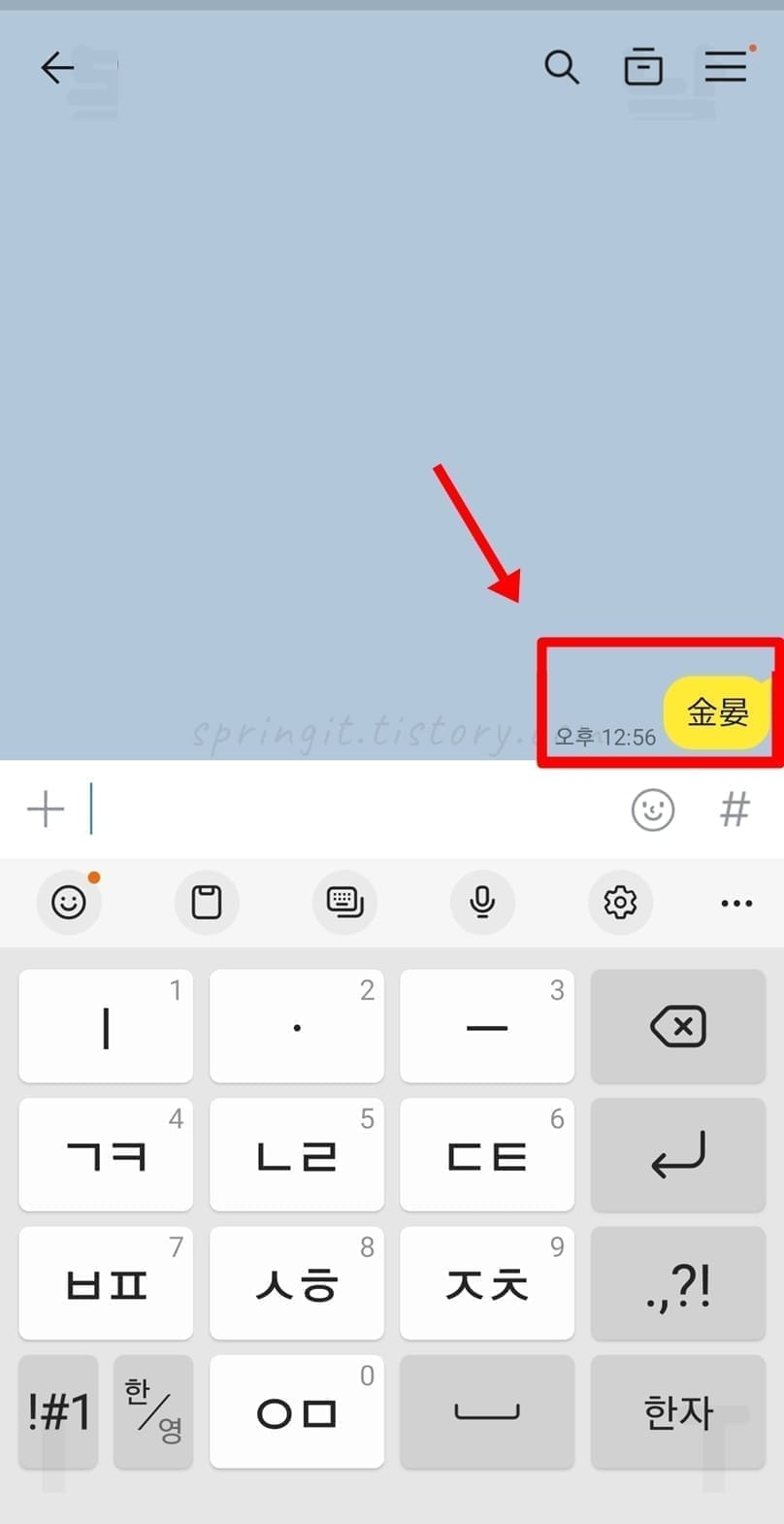 1. 채팅입력창을 눌러 삼성 키보드를 실행합니다.