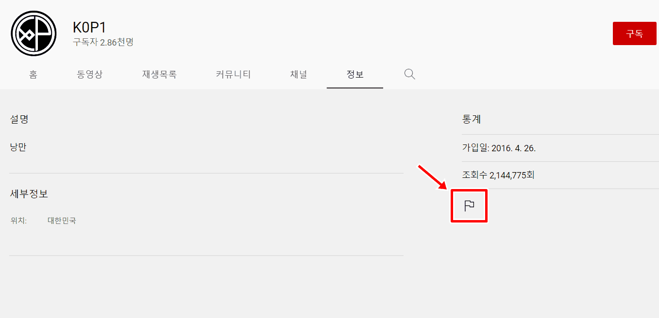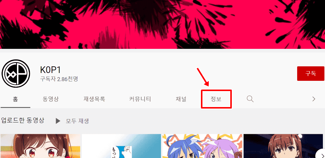 2. 채널 페이지에서 정보를 누릅니다.