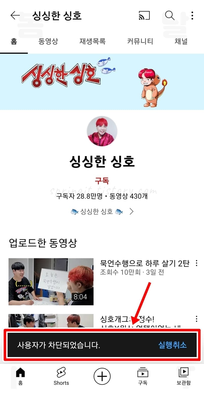 5. x버튼을 누르면 채널 차단이 해제됩니다.