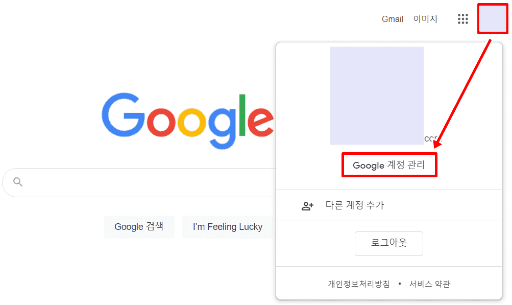 1. PC 구글 사이트에서 내 프로필을 누릅니다.