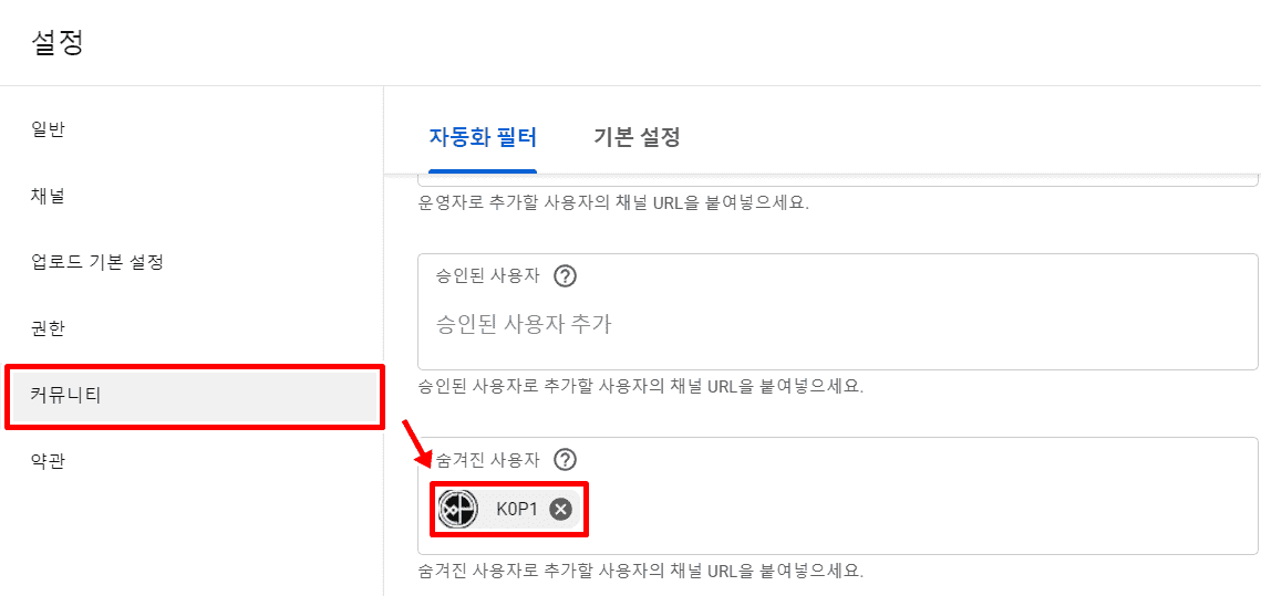 4. 커뮤니티에서 숨겨진 사용자를 확인합니다.