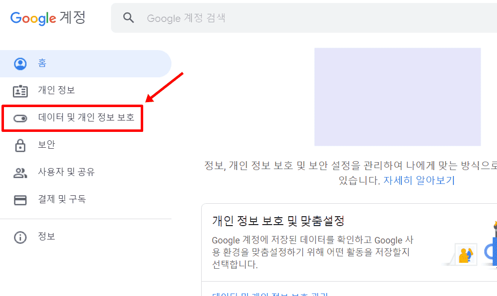 3. 데이터 및 개인 정보 보호를 누릅니다.