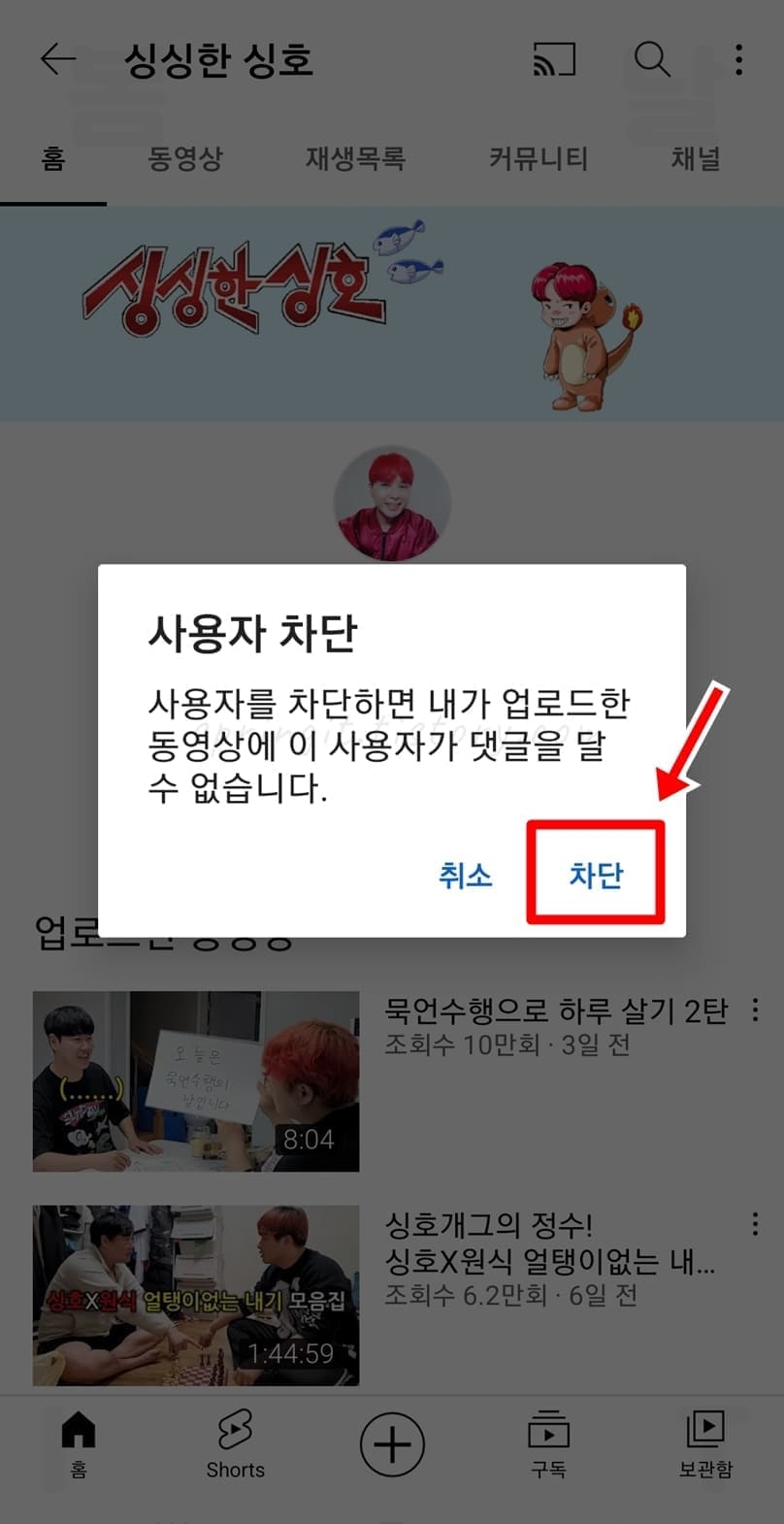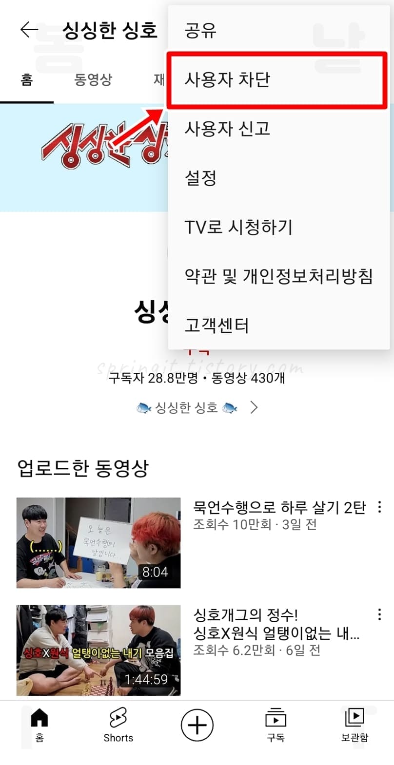모바일에서 유튜브 특정 채널 차단 방법