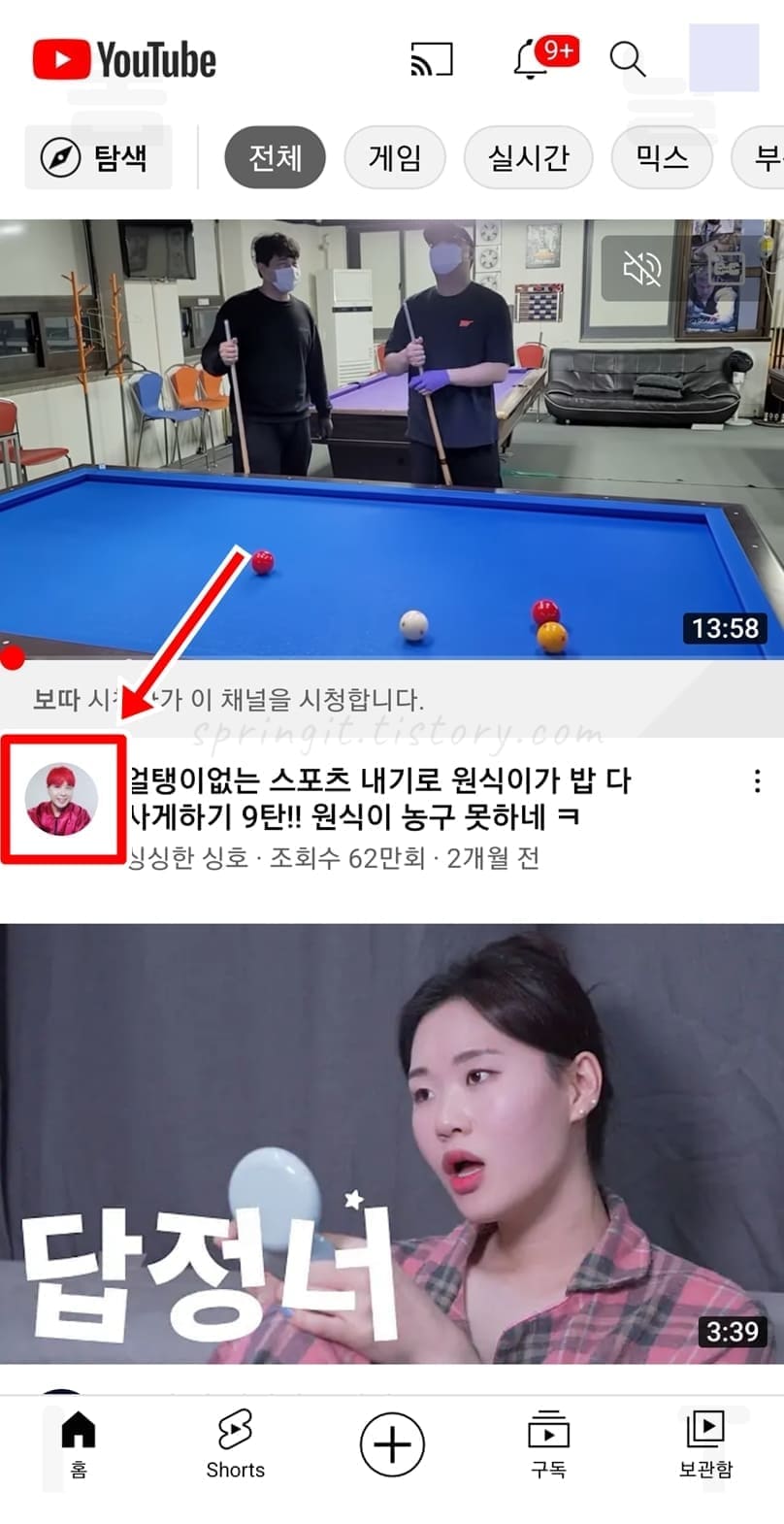 6. 다시 해당 유튜버와 동영상이 표시됩니다.