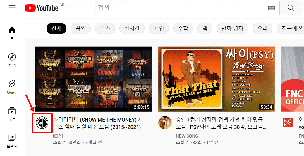 1. PC 유튜브 사이트에서 차단하고 싶은 채널을 클릭합니다.